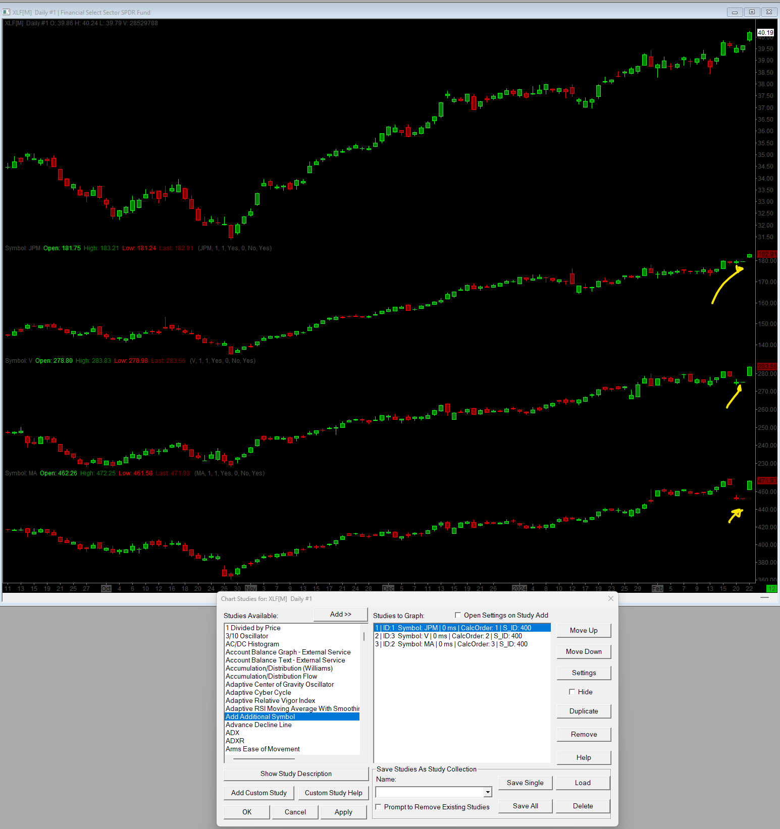 Thanks for your reply again. I think we can bring the issue one step before, see the attachment, even without the spreadsheet I have the issue. When I add the Add Additional Symbol Study, OHLC data is missing ONLY for yesterday, and it just repeats the Close Price of the day before yesterday into yesterdays OHLC. So, What can I do to solve the "Add Additional Symbol Study" not loading yesterday's OHLCV data? Thank you. |