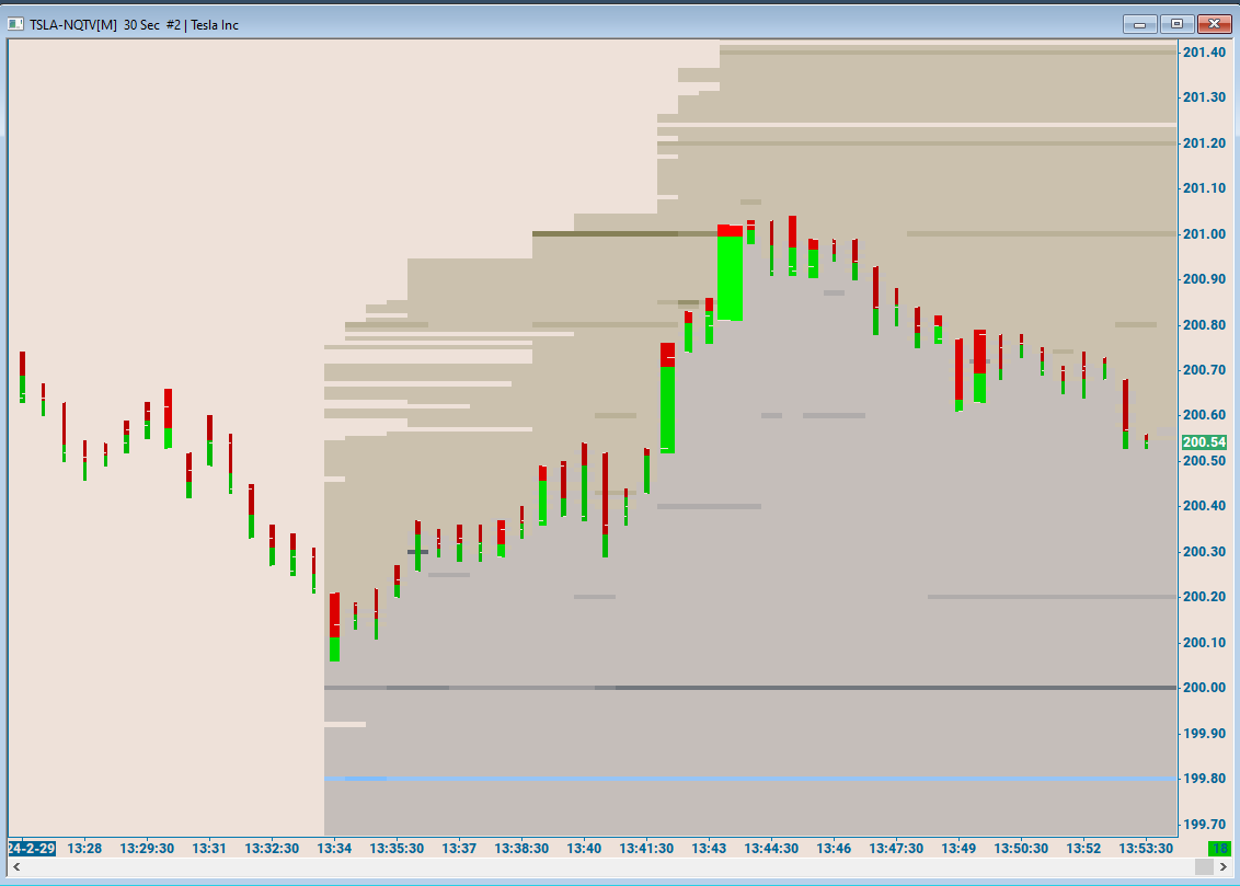 Am subsribed to both "Nasdaq Total View" Market depth data feed & US Consolidated Tape for Equities. Using <Ticker>_MBO notation for charting(Footprint,Volume Profile,TPO etc). Former user of Bookmap. Trying to come up with Bookmap style Orderbook/Heatmap for some of my key tickers like $TSLA, $AMD, $SPY, but dont have much luck. Under the Symbol Settings, I dont find the _MBO ticker, but located <Ticker>-NQTV (for eg TSLA-NQTV). Supports Market Depth="supported", Record Market Depth Data="yes", "Use Custom symbol Settings Values" are set. Plotted a 30sec chart, using a HeatmapExample.cht found on this support forum and this (attached) is what I get. Market Depth Historical Graph is the only study. Graph type is Bid/Ask Volume bar. Some of chart settings are Maximum Market Depth Data Days to load=30, Maximum Market Depth Levels=500,Number of Levels for Bid/Ask Depth Calculations=500. How do I get the CurrentOrderBook(COB) on the right column, with Bid/Ask size rounded to K/M and colored distinctly, SessionVolumeProfile & ChartVolumeProfile(visible bars) on the right columns? How do I make the Liquidity levels on the heatmap more pronounced and discrete? Right now, it has painted in pretty much two colors broadly, one above(ask side) and one below(bid side)..without any clear distinct liquidity levels.. Looking to get something like attached Bookmap screenshot.. What am I doing wrong? can you pls assist? Thanks |