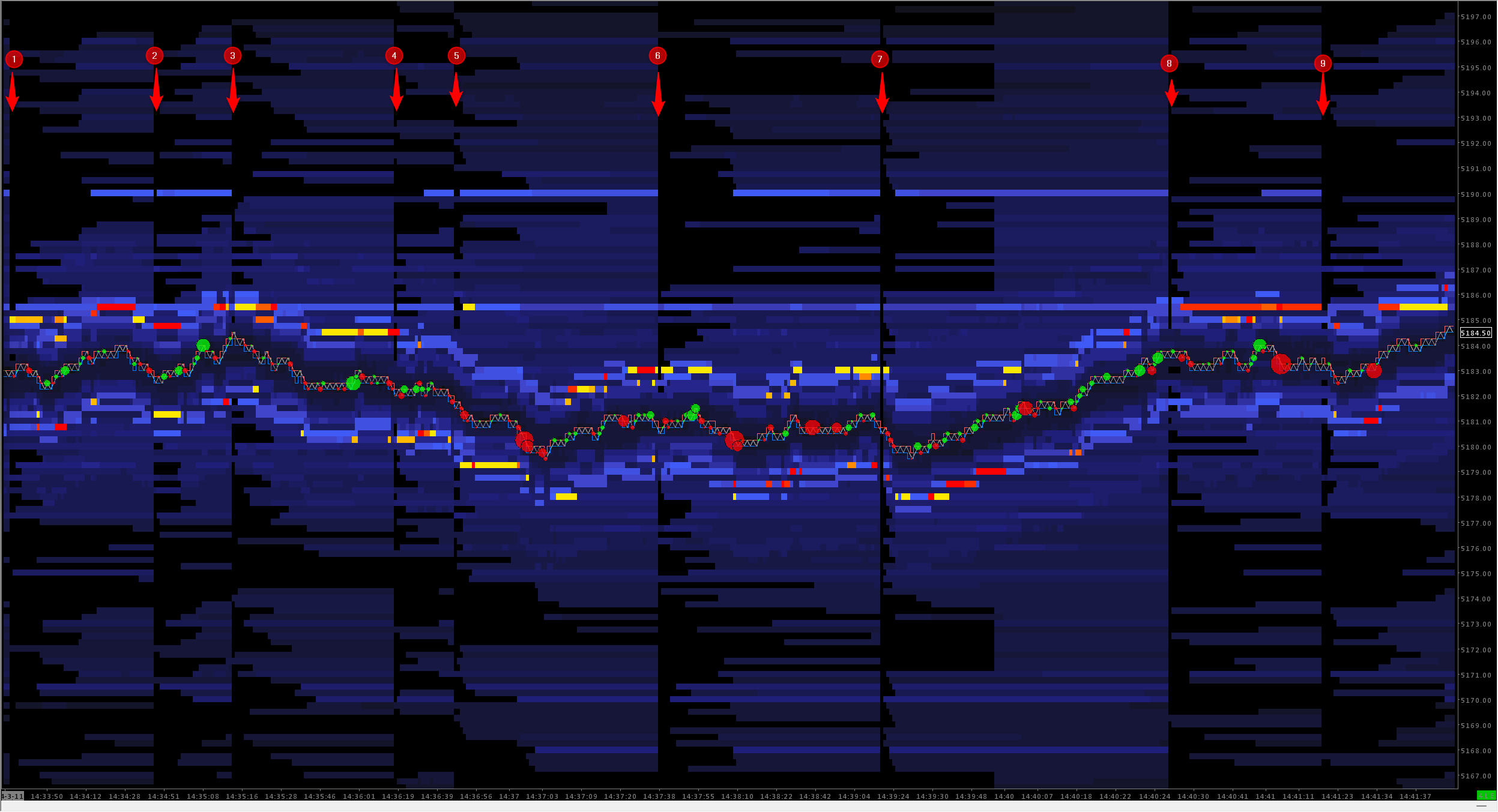 Can you tell me why the Market Depth Historical graph will periodically reset itself? I'm attaching a screenshot for reference. You can see every so often the depth graph will reset itself and will not fill in prices until the resting bid or offer at that price level changes quantities. The screenshot shows roughly 8 minutes of price movement and the depth graph reset 9 times. The depth graph is set to 0 for lowest quantity for coloring. With this setting I should never see any area on my visible depth where there are 0 resting orders. I thought maybe I could use "Extend Last Known Depth" as a workaround, but I still get these strange areas on my chart where depth isn't filled in (see Work Around image). How can this be resolved? Thanks! |