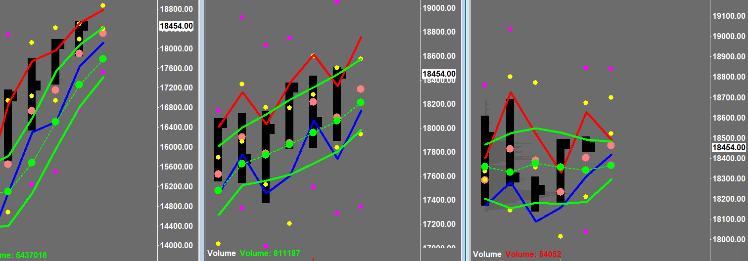 Hi, I'm attaching a screenshot of NQ. When we rolled over something weird happened to the data. You can see the monthly and weekly charts (far left is monthly, middle is weekly, daily is to the far right) are pushing new highs while the daily is not. The prices themselves are the same but they're not matching. I'm not sure what to do since this has never happened before. Please tell me the easiest way on how to fix this. I don't need super exact perfect tick data or volume data so maybe I can just set my charts to a rolling contract instead? Thanks, Ella