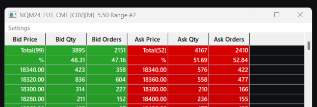 On the market depth window is there a way to view levels above where the current price is sitting at im viewing at every 20 points and it shows for the current price range at 340 and below but is there a way to view above that such as 360, 380, or 400?