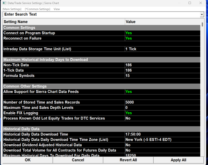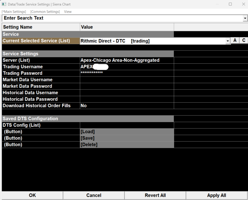 Hi I also have an Apex account Rithmic which when I connect to Sierra; removes my Denali connection and leave me with no data. I have a live account with AMP[teton routing] and denali data feed working fine on my account before. CME data is enabled and working In data trade service settings: Rithmic username and password are correct [under 31 letters] Market + historical data username and password: I have left empty as in documentation Allow support to Sierra chart data feeds= Yes And still it doesn't connect to Denali feed. If I open a chartbook "[M]" is missing instead it's something like [CBV-D] Message Log : Rithmic Direct DTC server connection complete There is some issue with connecting with Denali which I can't figure out Have tried updating symbol from server edit: translate symbols and everything; Keeps on saying downloading continuous contracts; which never download still doesn't work If I go back to my AMP account in trade service settings the data feed will start working fine. So why not with Rithmic account?? Please help Thanks |