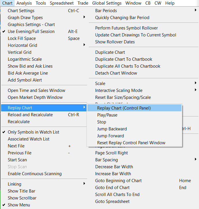 The other photo is on me clicking the replay control panel button and nothing happens afterward, i just installed the latest version of sierra chart as well |