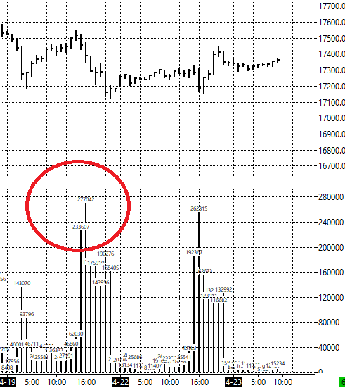 Hi, I want to display volume divided by 1,000 on top of each volume bar. I could do what I show in the attached file: the volume on top of each bar. But I want to have that divided by 1,000. The problem is: when I use the Study Subgraph Divide, as the result is 277 instead of 277042, the system draws the result at 277 height, that is, on bar bottom. What can I configure to have 277 number on top of a 277042 contracts bar? Thank you. Date Time Of Last Edit: 2024-04-23 07:36:43