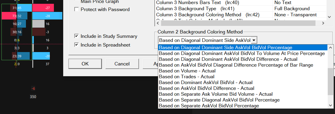 Post From: Number bars highlight based on diagonal dominant side AskVol BidVol Percentage