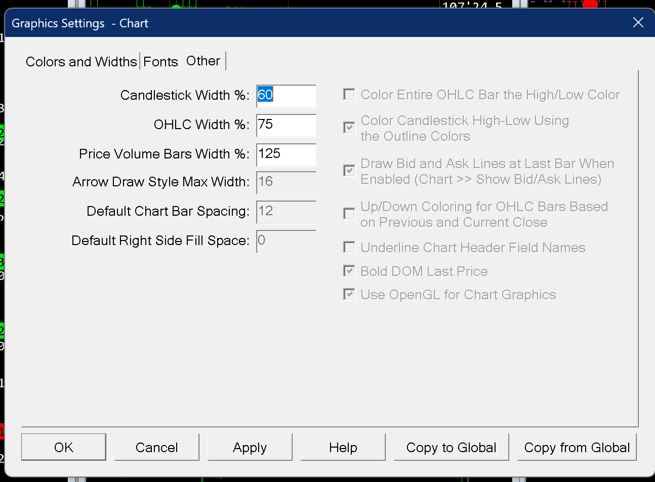 That did not work. Also now I am getting all these options disabled. I don't think the SierraChart_ARM64.exein admin or else is working on ARM architecture based Apple M3 and simulated in windows by Parallels Windows 11. Additionally it disabled several other options in Graphics settings. please see the screenshot below. Please note running SierraChart_64.exe in admin or user mode unchecks the OpenGL option upon restart. I am not sure how, running in admin mode fixed the opengl issue for another user. Please investigate. Please see the screenshots. I have latest openGL driver installed and working on Windows 11 Parallels. Also please see below benchmark test results Renderer: Parallels using Apple M3 Max (Compat) Vendor: Parallels and Apple Version: 4.1 Metal - 88 Shading language version: 4.10 Max texture size: 16384 x 16384 Max vertex texture image units: 16 Maximum Texture Image Units: 16 Max geometry texture units: 16 Maximum Anisotropic Filtering Value: 16 Max viewport size: 16384 x 16384 Max Clip Distances: 8 Max samples: 8 GL Extensions: 130 GL_ARB_tessellation_shader GL_EXT_packed_depth_stencil GL_ARB_texture_compression_rgtc GL_ARB_draw_instanced GL_EXT_draw_buffers2 GL_ARB_viewport_array GL_ARB_gpu_shader_fp64 GL_EXT_texture_shared_exponent GL_ARB_draw_elements_base_vertex GL_ARB_explicit_attrib_location GL_EXT_texture_env_dot3 GL_ARB_texture_float GL_ARB_point_parameters GL_ARB_texture_compression GL_EXT_transform_feedback GL_ARB_depth_buffer_float WGL_EXT_render_texture GL_ARB_vertex_buffer_object GL_EXT_packed_float GL_ARB_pixel_buffer_object GL_ARB_separate_shader_objects WGL_EXT_framebuffer_sRGB GL_ARB_fragment_program_shadow GL_EXT_texture_object WGL_EXT_swap_control GL_ARB_shading_language_100 WGL_ARB_extensions_string GL_ARB_texture_storage GL_EXT_packed_pixels GL_ARB_gpu_shader5 GL_EXT_texture3D GL_EXT_stencil_wrap GL_ARB_texture_swizzle GL_EXT_texture_compression_s3tc GL_ARB_vertex_program GL_EXT_texture_sRGB GL_ARB_texture_rectangle GL_ARB_depth_clamp GL_ARB_texture_cube_map_array GL_ARB_framebuffer_sRGB WGL_ARB_render_texture GL_ARB_texture_env_add GL_ARB_texture_rg GL_ARB_blend_func_extended WGL_EXT_extensions_string GL_ARB_vertex_attrib_64bit GL_EXT_vertex_array GL_ARB_texture_gather GL_ARB_half_float_vertex GL_ARB_texture_cube_map GL_EXT_shadow_funcs GL_EXT_texture_filter_anisotropic GL_EXT_pixel_buffer_object GL_EXT_multi_draw_arrays GL_ARB_vertex_array_object GL_ARB_shadow GL_ARB_vertex_array_bgra GL_ARB_shader_texture_lod GL_SGIS_generate_mipmap GL_EXT_blend_minmax WGL_ARB_pixel_format GL_ARB_point_sprite GL_ARB_depth_texture GL_ARB_copy_buffer WGL_ARB_make_current_read GL_ARB_get_program_binary GL_ARB_transform_feedback2 GL_ARB_transform_feedback3 WGL_ARB_pbuffer GL_ARB_map_buffer_range GL_ARB_occlusion_query WGL_ARB_create_context GL_ARB_fragment_shader GL_ARB_draw_buffers GL_ARB_vertex_shader WGL_EXT_make_current_read GL_ARB_fragment_program GL_EXT_framebuffer_blit GL_EXT_framebuffer_sRGB GL_ARB_draw_indirect GL_ARB_imaging GL_ARB_texture_env_combine GL_EXT_abgr GL_EXT_bgra GL_ARB_texture_non_power_of_two GL_ARB_texture_buffer_object GL_EXT_texture_edge_clamp GL_ARB_sync GL_ARB_texture_query_lod GL_EXT_framebuffer_object GL_EXT_texture_integer GL_ARB_draw_buffers_blend GL_ARB_sample_shading GL_EXT_gpu_program_parameters GL_ARB_internalformat_query GL_ARB_timer_query GL_ARB_shader_subroutine GL_EXT_gpu_shader4 GL_EXT_texture_swizzle GL_ARB_provoking_vertex GL_EXT_texture_buffer_object GL_EXT_texture_env_combine GL_EXT_draw_range_elements GL_EXT_texture_env_add GL_ARB_multisample GL_ARB_shader_objects GL_EXT_geometry_shader4 GL_ARB_texture_env_dot3 GL_ARB_vertex_type_2_10_10_10_rev WGL_ARB_create_context_profile GL_ARB_texture_buffer_object_rgb32 GL_ARB_instanced_arrays GL_NV_texture_rectangle GL_ARB_ES2_compatibility GL_ARB_uniform_buffer_object GL_EXT_framebuffer_multisample GL_ARB_texture_multisample GL_EXT_stencil_two_side GL_ARB_sampler_objects GL_ARB_occlusion_query2 GL_ARB_framebuffer_object WGL_ARB_framebuffer_sRGB WGL_EXT_pixel_format WGL_EXT_pbuffer GL_ARB_multitexture GL_EXT_texture_array GL_ARB_seamless_cube_map GL_ARB_texture_rgb10_a2ui GL_ARB_fragment_coord_conventions GL_ARB_shader_bit_encoding Core features v3.0 (100 % - 1/1)v3.1 (100 % - 1/1)v3.2 (100 % - 1/1)v3.3 (100 % - 1/1)v4.0 (100 % - 1/1)v4.1 (100 % - 1/1)v4.2 (0 % - 0/1)v4.3 (0 % - 0/1)v4.4 (0 % - 0/1)v4.5 (0 % - 0/1)v4.6 (0 % - 0/1)OpenGL driver version check (Current: 0, Latest known: ): Latest version of display drivers found According to the database, you are running the latest display drivers for your video card. Extension verification: |