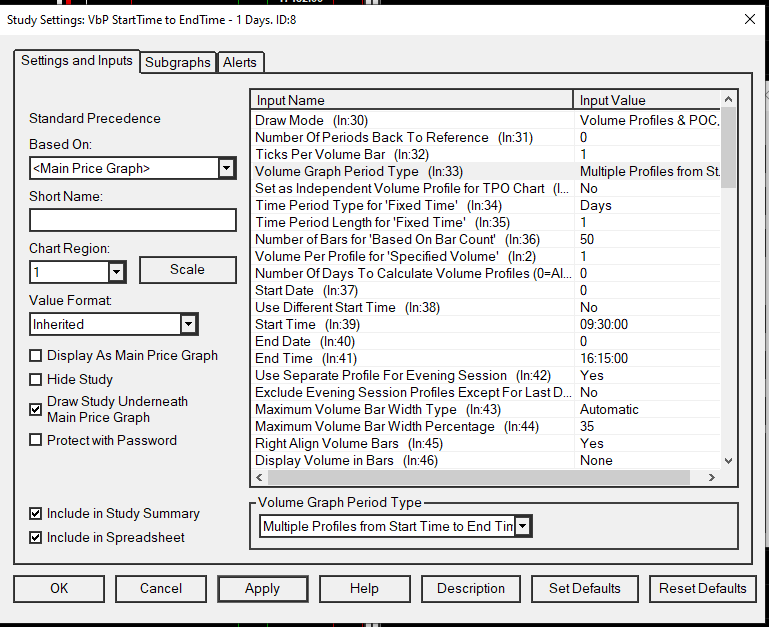 Hello, maybe this is a very simple question but I can't make it work yet. I am trying to rebuild the screenshot in Sierra Chart with the given settings on the other screenshot. Even with the multiple profile setting SC is showing no volume profile. I don't know what I am doing wrong or must be change to make it work. |