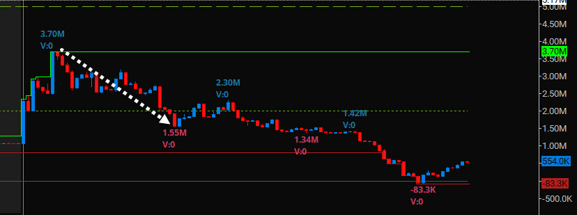 Hello, Is it possible to see the volume difference between swing high/lows using the ZigZag study on the Cumulative Delta Bars - Volume study. I would like to see how much volume it took to go between swing levels to show if bids/offers are absorbing. I changed the Volume to Accumulate to Ask-Bid Volume Difference and Display ZigZag Volume but the values show 0 Thank you! |