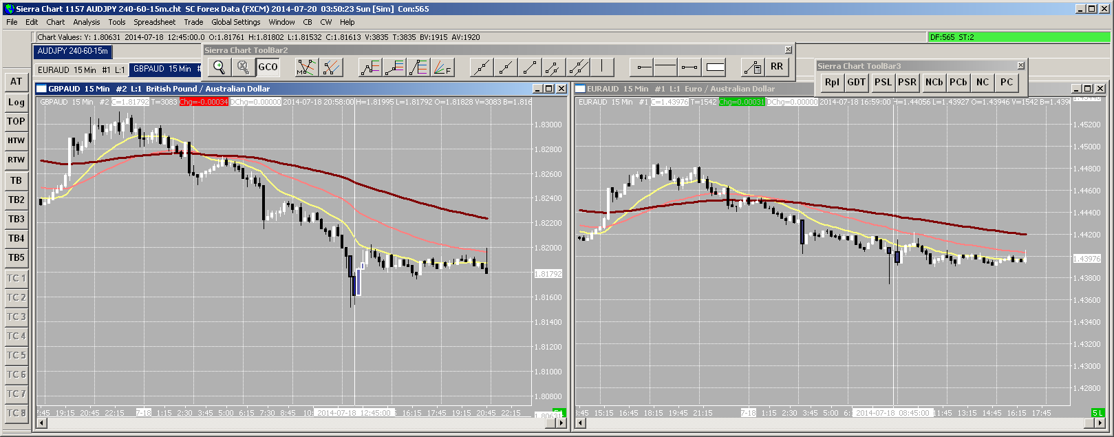 I have scrolled all charts to the end. The global cursor shows different times on the GBPAUD and EURAUD charts. Find a number of screenshots attached. Thanks.