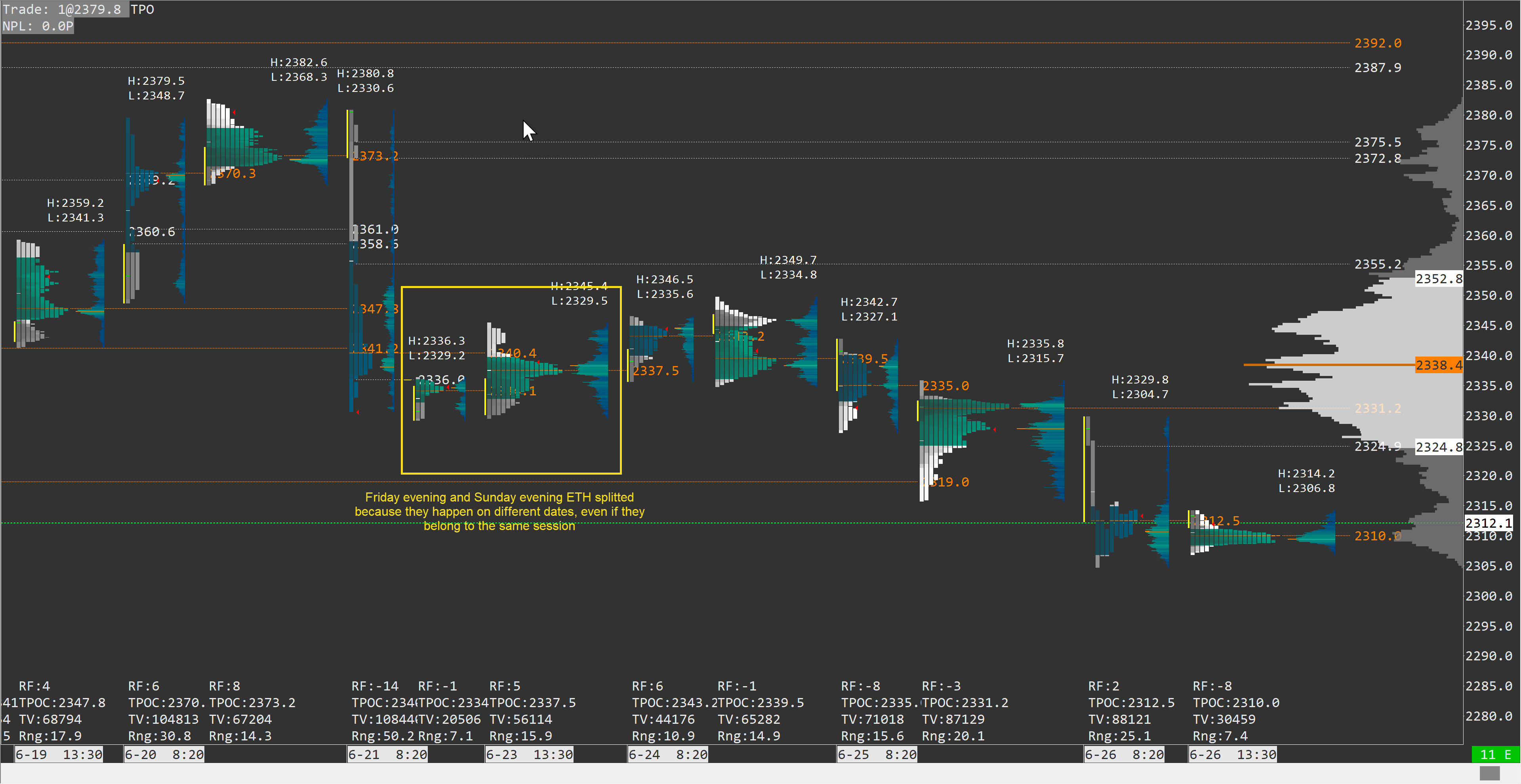 Hi there, if I set the 'main' session time equal to the US session for equities (cash session 9:30-16:00 ET) is there a way to merge Friday's evening session and Sunday's reopening together to not have different ETH profiles for basically the same ETH session? Screenshot attached. Thanks