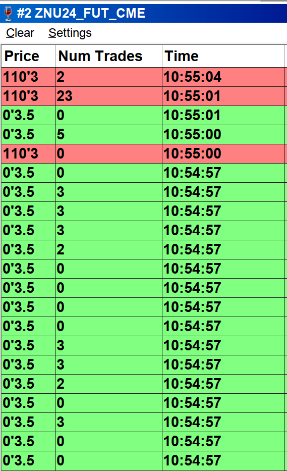 Thank you. I can confirm that I have Show Bid and Ask Records disabled in the Time and Sales settings. It looks like every time there is a number of trades of 1, it prints as a 0. The other values seem to be coming in normally.
