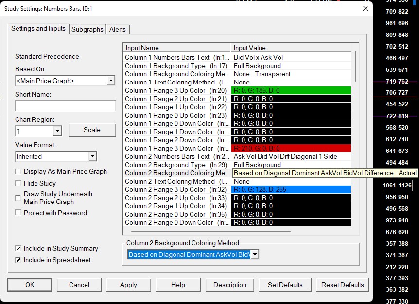 Post From: Numbers Bar - Coloring Based on Diagonal Dominant AskVol BidVol - Actual