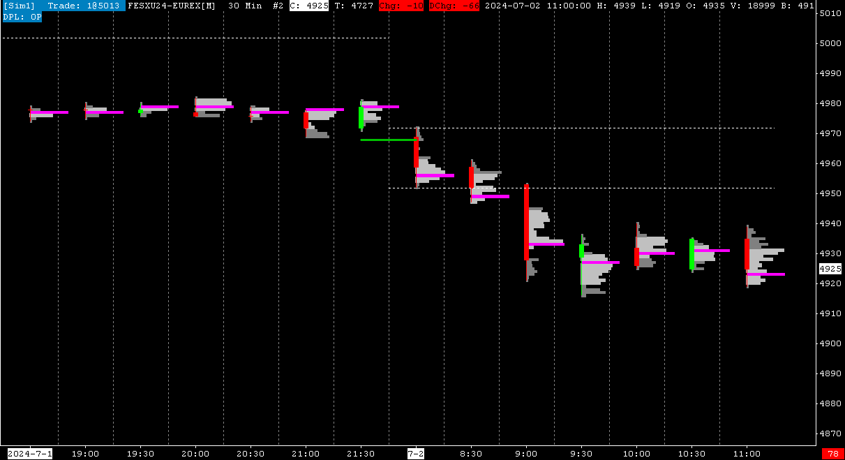 Hi. I have created a simple candlestick chart with a VbP Study. Works well so far. What I want, is to automatically draw a line from the open of the present candle to the previous candle, so I can see in wich relation the opening price is to POC and value area of the previous candle. As I did manually here: https://www.sierrachart.com/image.php?Image=1719919969401.png Best regards, Andreas |