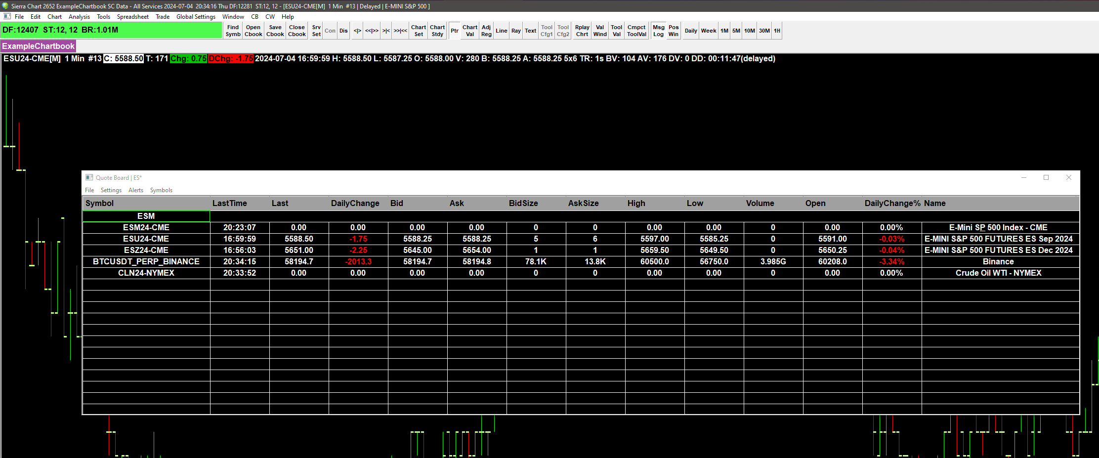 Hello, I have been searching high and low, up and down all over SC Support Boards and internet for hours, and i cannot figure out why volume for E-MINI S&P 500 FUTURES - CME is not showing, being stuck to 0 This is what i have done so far: - I have activated Service Package 5 - Base Advanced - I have filled in all my personal information, including Phone no. - I have signed the Exchange Agreement. - I have made sure that the Symbols are rolled over to current/active month - I have selected SC Data- All services in Trade Service settings - I have set Allow support for SC Data Feeds to NO (YES seting made no difference :) - I have also restarted SC a couple of times during this process. - I am running SC version 2653 64bit, revision 50645 Am I missing smth? If so, call me a dumba$$ and please point the obvious to me, as i really do need your help with this. Thank you for your time. BR Date Time Of Last Edit: 2024-07-04 20:56:05