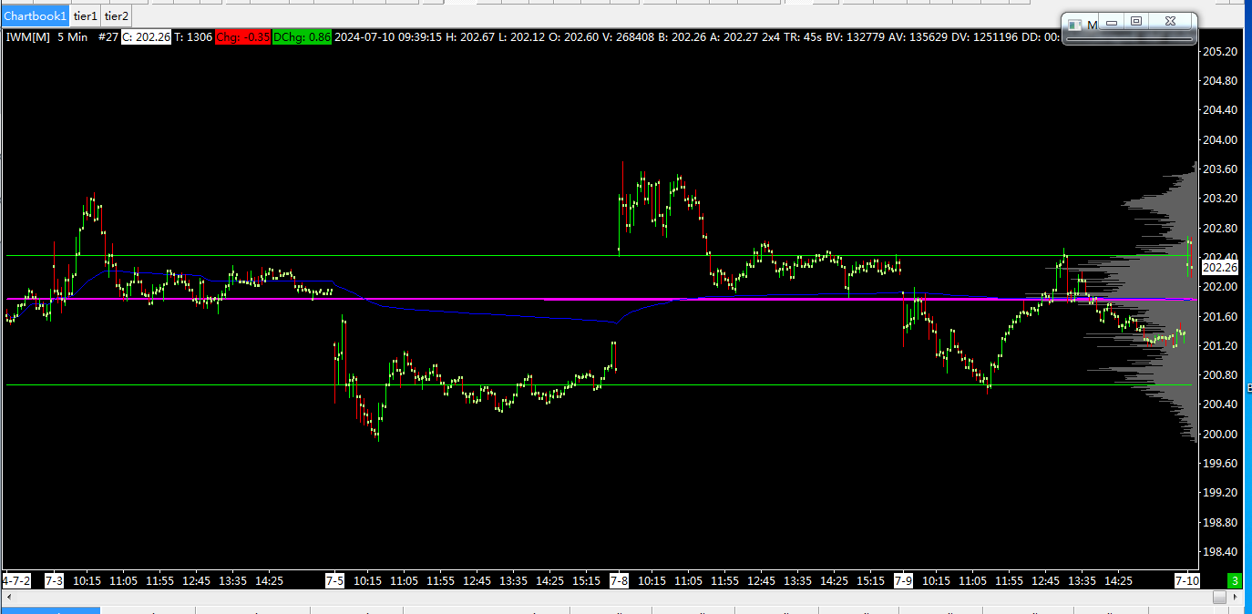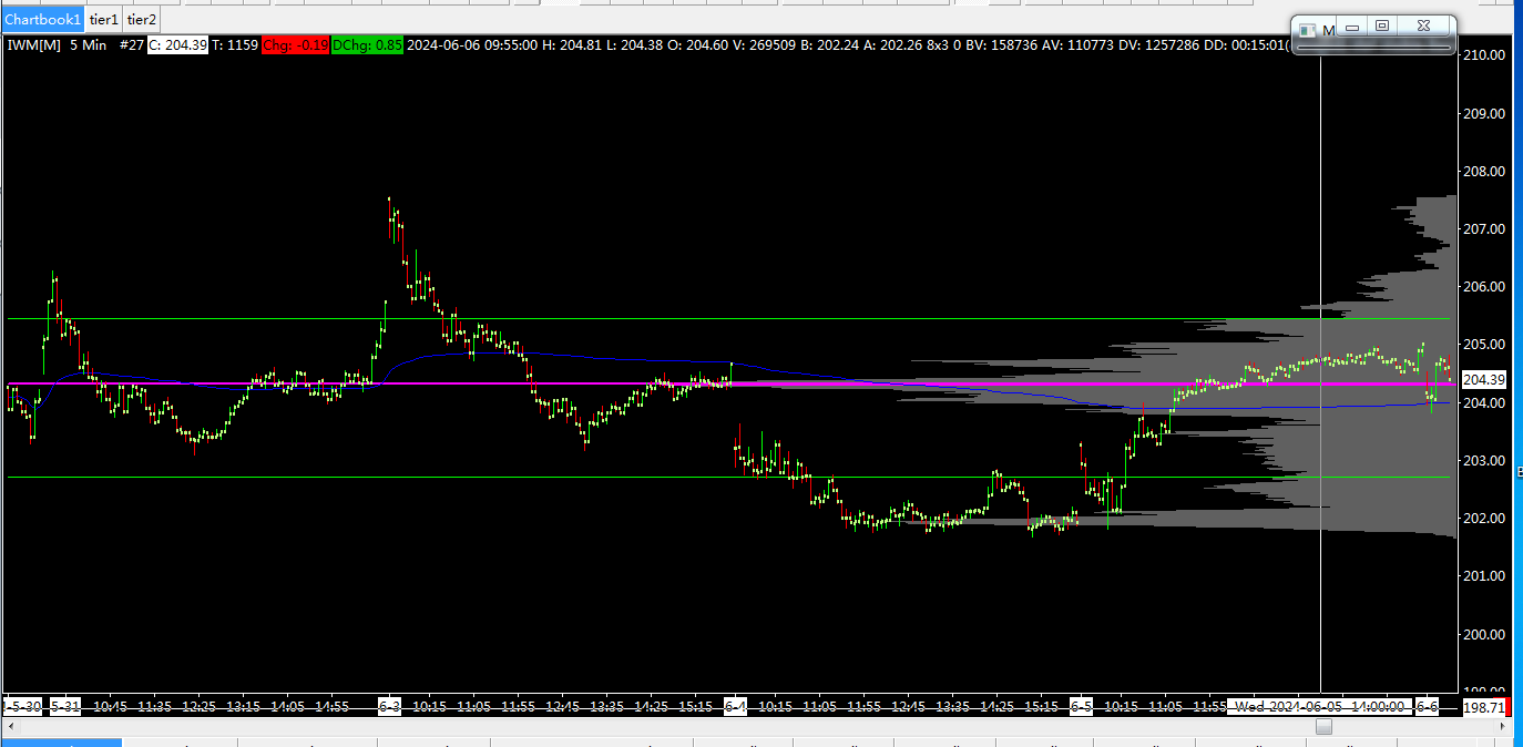 The strange thing is that there is a big difference between looking at the recent market data and looking at the historical market data. The volume by price indicator of the recent market data has more flaws, and the settings are all the same, including the "Volume at Price Multiplier for Intraday Chart/Volume at Price Multiplier for Historical Chart" and "visible bars"
