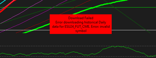 I want to filter Market by Order minimum quantities, and have set custom symbol settings as seen in the pic. Unfortunately this prevents my historical chart (ES daily in this example) from loading each day's candle while set. If I select Edit > Download data for historical chart I get the error message in teh second pic. I can deselect Set Custom Symbol and download the daily candle every day, then reset Custom to get my Market by Order data filter back, but this is cumbersome. Is there an easier way? |