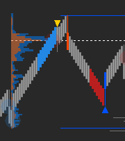 When using the draw vol profile tool, when the vpoc line is drawn, it's difficult to distinguish the distribution of bid/ask vol because the line is drawn ontop of the vol profile (example attached). I've played around with the ticks per bar, and used a variety of line drawing styles/weights, and not sure if there is another setting to achieve what I'm after. Currently, I have it set to show dominant bid (orange)/ask(blue) along with the vpoc line. Say, for example, at the vpoc... the ask was the dominant volume (60% ask vol vs 40% bid vol). I'd like for the vpoc to take a color based on which was the dominant volume (white (dominant bid) vs pink (dominant ask)). Is there a way to do this? Alternatively, if this could be set to be drawn behind the vol profile, that might solve the problem too. however, that would only work for the scenarios when the vpoc is within the current chart view. |