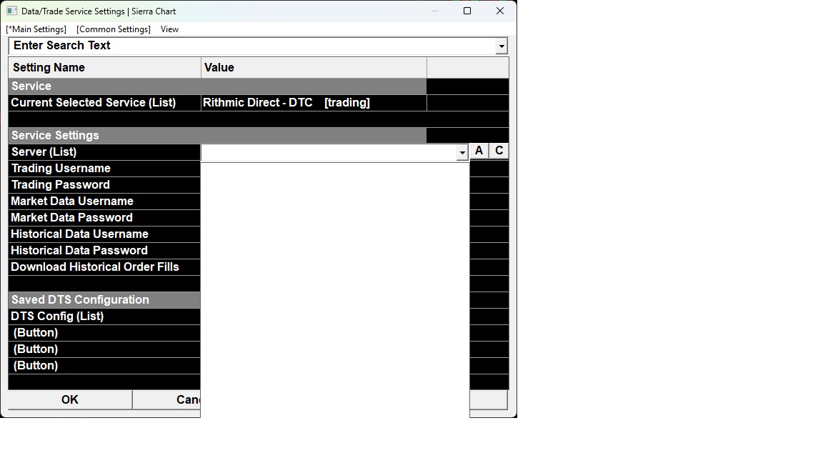 Hello, I just reinstalled Sierra Chart on my computer and for some reason under DTS, the server list is not populating. I have attached a picture. Not sure what I am doing wrong.