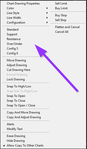I have some customized chart drawing configs that I like to apply via the pop-up menu. Screenshot #1 shows how it looks like on version 2679. After updating to the latest version 2686 my configs are no longer shown in the pop-up menu (see screenshot #2). However, they are still available in the Chart Drawing Properties dialog. So it seems that there is some issue with the pop-up menu after the latest update. |