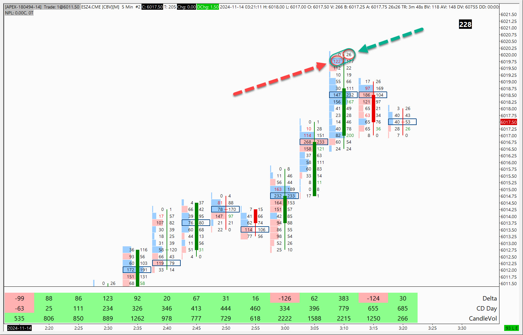 Hi Sierra Chart support, How to read sell volume and buy volume at specific price level and use in Spreadsheet for trading? I want to compare these values to determine imbalance. Please refer to attached picture for your reference. Regards, Varin Date Time Of Last Edit: 2024-11-14 09:14:03
