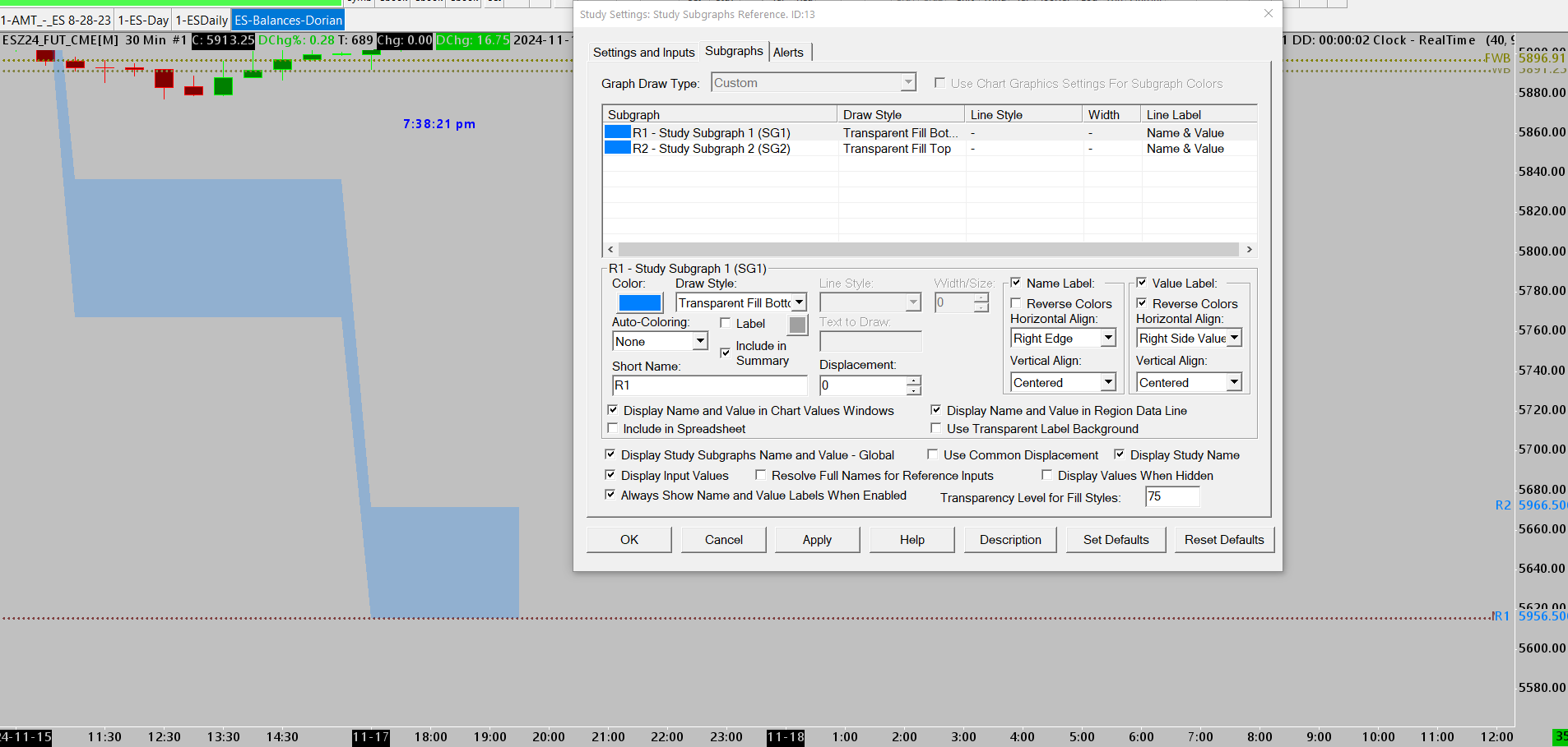 I am using the Study Subgraphs Reference-the values are correct as you can see on the y axis 5956.5 and 5966.5 but for some reason are not graphing in the right location in chart region 1 as soon on attached picture.
