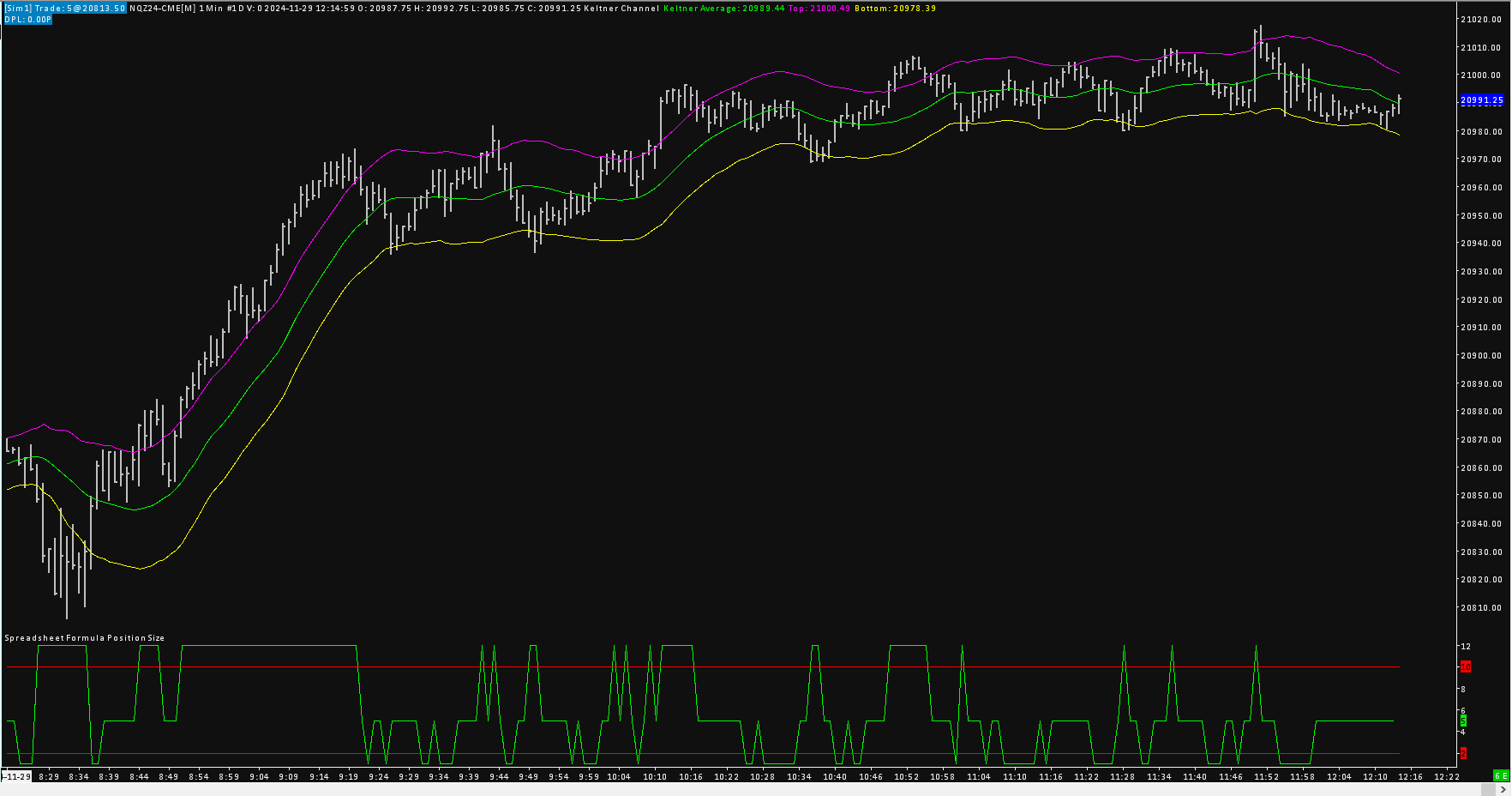 Attached. Zip file has source and compiled study. Study sets sc.TradeWindowOrderQuantity based on formula result. Calculated position size is output to subgraph. Min/Max position size constraints (set in the study) are output to subgraph. Example chart used for testing attached, see also image. |