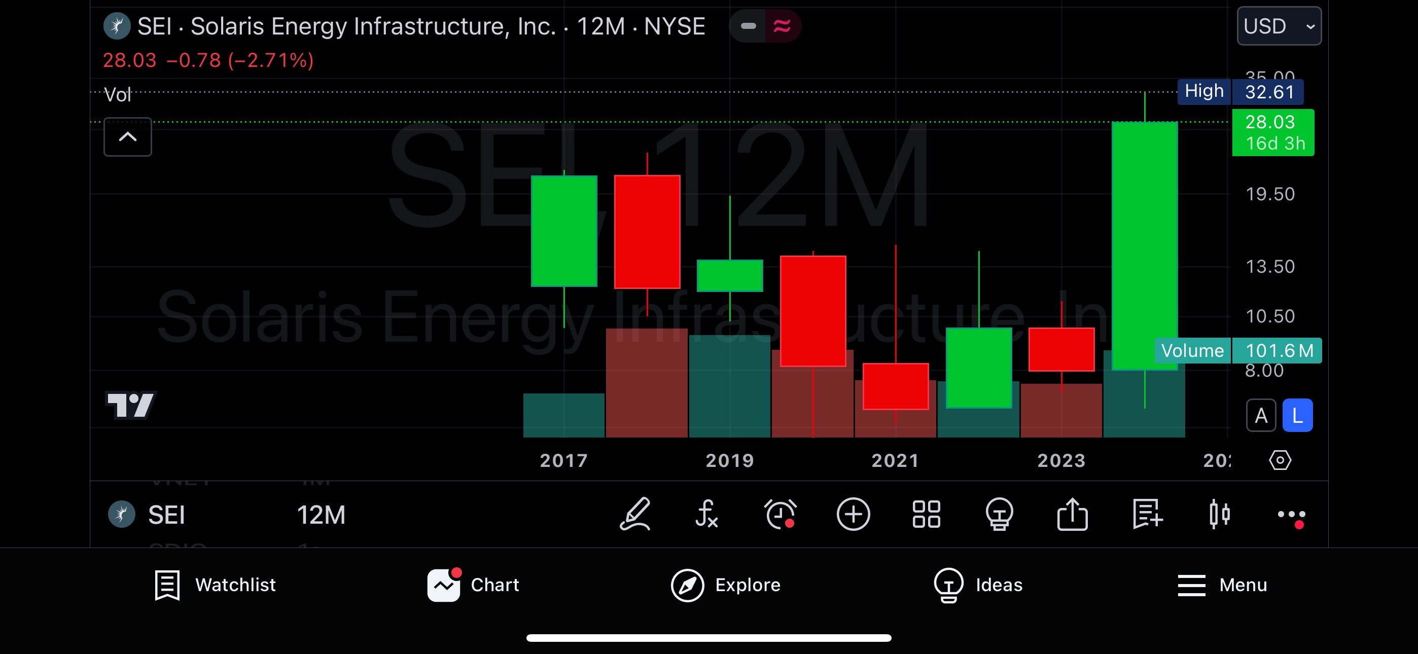 Hello SC Engineering. Thank you for the assistance and follow through. I am not seeing the Sept 2024 limitation on other charting platforms. I'm not very concerned with SEI per se however, I wonder if there could be a larger issue. See attached images. |