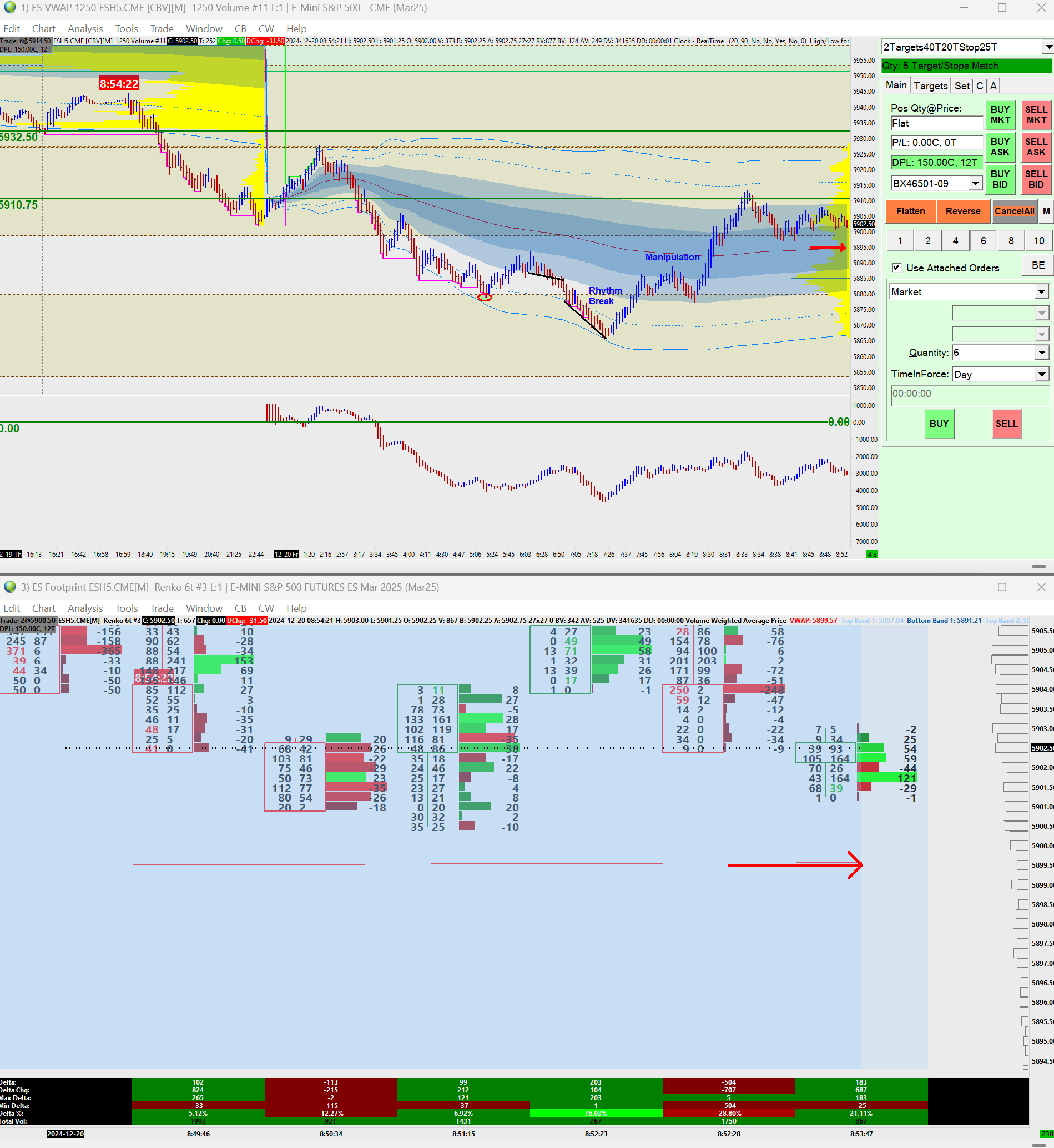 Hi, I have a 20+ tick difference on these 2 charts for the position of VWAP. I've obviously got a setting wrong somewhere, can anyone help please? Many thanks Rob |