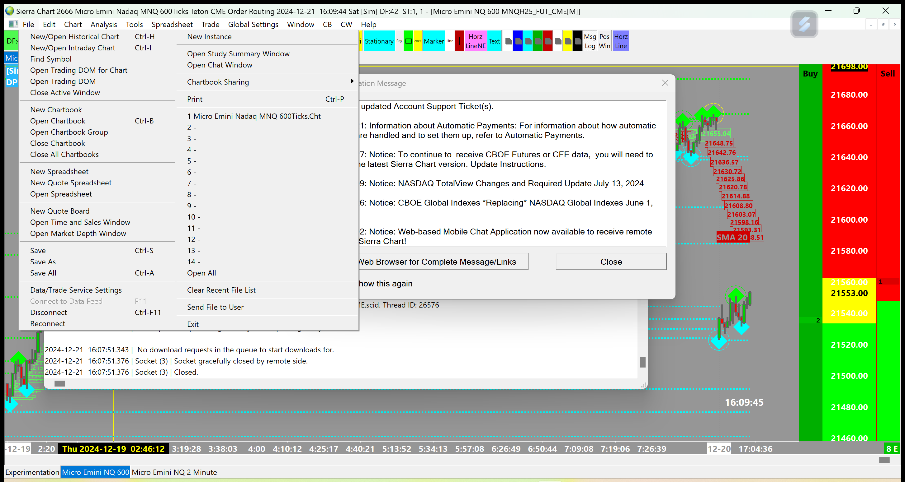 Hi, My chart and Live Data feed was working fine till Dec.19. On Dec. 20th No data and few mwassages which I am attaching herewith. I am Paid for uptil Aogust 2025 since Ipaid Chart & Data $2. both for a year. But Iam getting different massages inlogbook when Istart Sierra chart. I dont think Dec.20 Friday holiday was holiday. I dont think either that I had to got CMC to click on soething to prove my Non professional supposeddat status since Ido have a broker registered with you. |