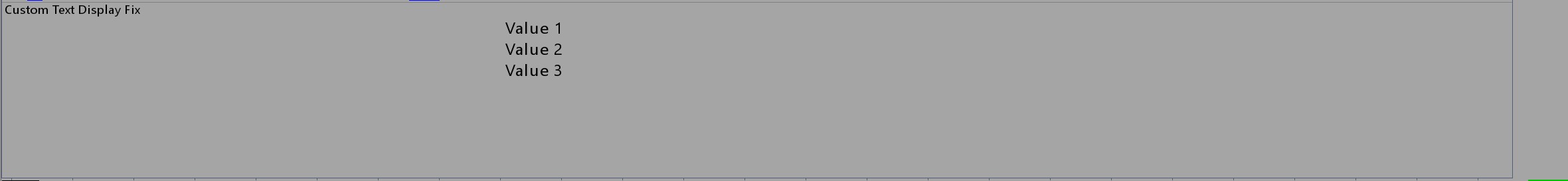 SCDLLName("Custom Text Display") SCSFExport scsf_TextDisplay(SCStudyInterfaceRef sc) { SCSubgraphRef Subgraph_TextDisplay = sc.Subgraph[0]; SCInputRef Input_HorizontalPosition = sc.Input[0]; SCInputRef Input_VerticalPosition = sc.Input[1]; SCInputRef Input_TransparentLabelBackground = sc.Input[2]; SCInputRef Input_UseBoldFont = sc.Input[3]; SCInputRef Input_TextValue1 = sc.Input[4]; SCInputRef Input_TextValue2 = sc.Input[5]; SCInputRef Input_TextValue3 = sc.Input[6]; if (sc.SetDefaults) { sc.GraphName = "Custom Text Display"; Subgraph_TextDisplay.Name = "Text Display"; Subgraph_TextDisplay.DrawStyle = DRAWSTYLE_CUSTOM_TEXT; Subgraph_TextDisplay.PrimaryColor = RGB(0, 0, 0); // Black text Subgraph_TextDisplay.SecondaryColor = RGB(255, 255, 221); // Pale yellow (backup) Subgraph_TextDisplay.SecondaryColorUsed = false; // Disable secondary color Subgraph_TextDisplay.LineWidth = 12; // Font size Input_HorizontalPosition.Name = "Horizontal Position"; Input_HorizontalPosition.SetInt(50); // Default position Input_VerticalPosition.Name = "Vertical Position"; Input_VerticalPosition.SetInt(50); // Default position Input_TransparentLabelBackground.Name = "Transparent Background"; Input_TransparentLabelBackground.SetYesNo(true); // Default to transparent Input_UseBoldFont.Name = "Use Bold Font"; Input_UseBoldFont.SetYesNo(false); // Default to non-bold Input_TextValue1.Name = "Text Value 1"; Input_TextValue1.SetString("Value 1"); Input_TextValue2.Name = "Text Value 2"; Input_TextValue2.SetString("Value 2"); Input_TextValue3.Name = "Text Value 3"; Input_TextValue3.SetString("Value 3"); sc.AutoLoop = 0; return; } // Define transparent background flag int TransparentLabelBackground = Input_TransparentLabelBackground.GetYesNo(); // Retrieve text values from inputs SCString TextValue1 = Input_TextValue1.GetString(); SCString TextValue2 = Input_TextValue2.GetString(); SCString TextValue3 = Input_TextValue3.GetString(); // Combine text values for display SCString CombinedText; CombinedText.Format("%s\n%s\n%s", TextValue1.GetChars(), TextValue2.GetChars(), TextValue3.GetChars()); // Forcefully ensure secondary color is not used Subgraph_TextDisplay.SecondaryColorUsed = false; // Add and manage the text drawing with specified properties sc.AddAndManageSingleTextDrawingForStudy( sc, false, // Do not display in fill space Input_HorizontalPosition.GetInt(), Input_VerticalPosition.GetInt(), Subgraph_TextDisplay, TransparentLabelBackground, // Use transparency setting CombinedText, sc.DrawStudyUnderneathMainPriceGraph ? 0 : 1, // Draw below the main price graph Input_UseBoldFont.GetYesNo() // Use bold font if enabled ); // Ensure no solid green background when transparency is selected if (TransparentLabelBackground) { Subgraph_TextDisplay.PrimaryColor = RGB(0, 0, 0); // Default to black text Subgraph_TextDisplay.SecondaryColorUsed = false; // Reinforce disabling secondary color } // Restore scaling for the chart sc.ScaleRangeType = SCALE_SAMEASREGION; } Date Time Of Last Edit: 2025-01-06 15:40:07