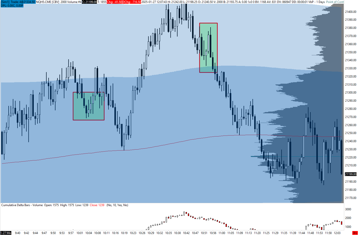 Hey there, my wife and i using Sierra Chart for analysis. We analyse NQ with 2000 Volume chart. We have set up everything equal. Despite this we have different Volume candles in the Chart, how is this possible? In my chart some candles are sell candles (black) in her chart they are buy candles (white). Or she has dojis and i have normal candles. See attached charts. https://www.sierrachart.com/image.php?Image=1738005559349.png https://www.sierrachart.com/image.php?Image=1738005540118.png How is this possible? Best regards, Simon |