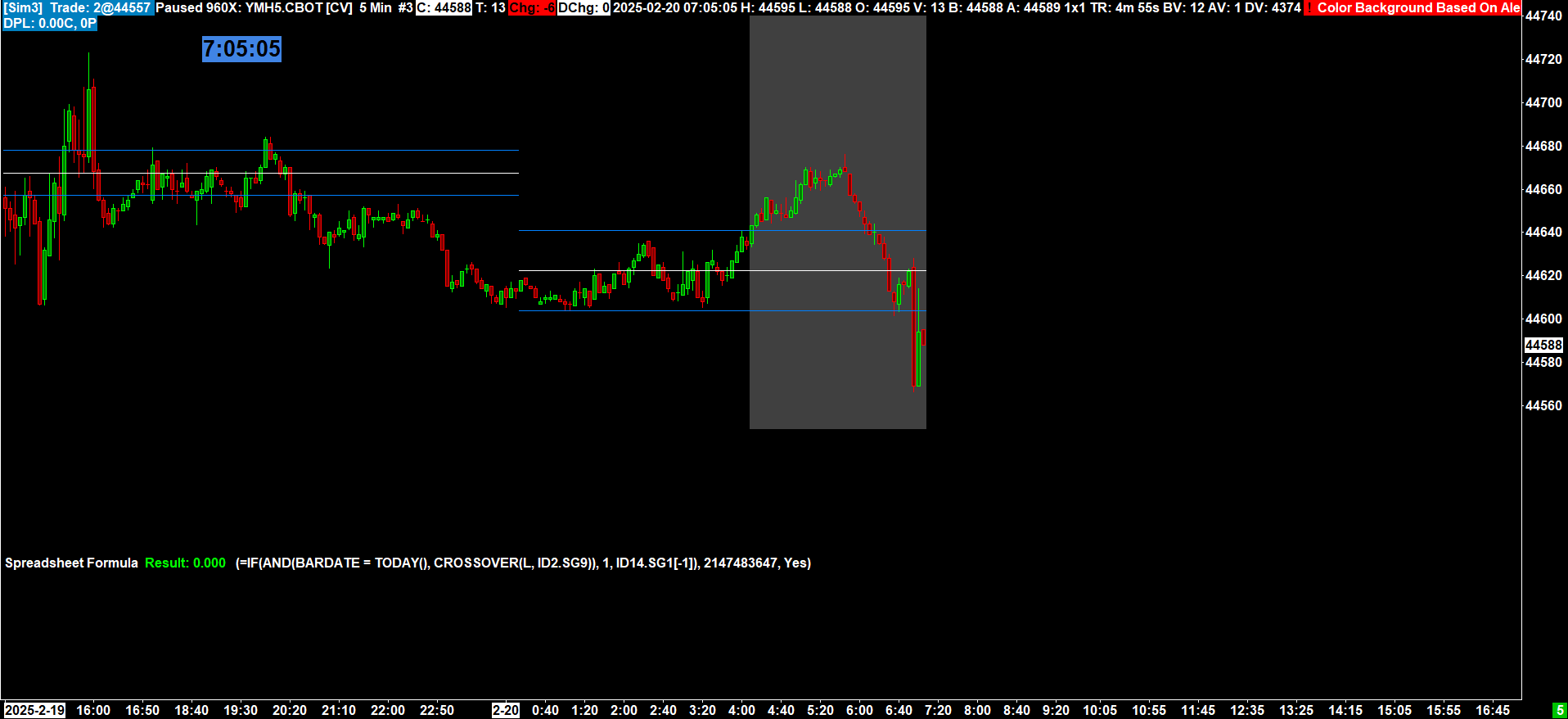 https://www.sierrachart.com/image.php?Image=1740156411295.png here is the screencshot of my graph where you can see the price cross the low of the ib and the value stay at zero. here is the copie paste of the exact formula that i have on the spreadsheet formula study:=IF(AND(BARDATE = TODAY(), CROSSOVER(L, ID2.SG9)), 1, ID14.SG1[-1]) where id2 is the ib study and id14 is the spreadsheet formula study |