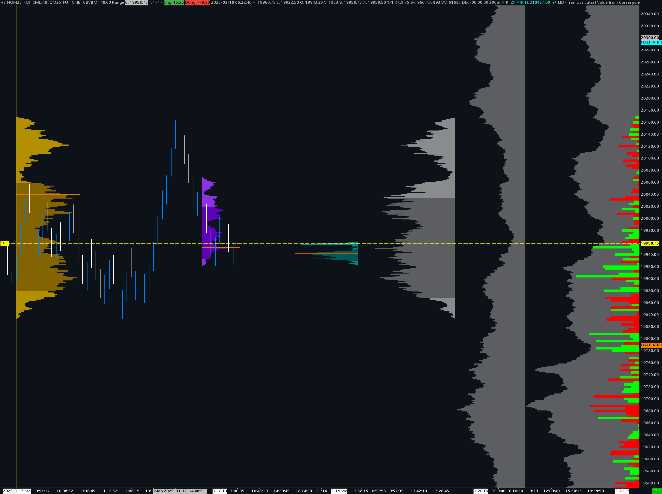 I use Volume by Price extensively in my trading. Attached you'll see I have many volume profiles, 2 on the left are for ETH and RTH, those on the far right are various 365 day, 200 day, etc... I also trade the 1 hour ( 930 to 1030 ) initial balance and have a volume profile setup to form during this period. It is the cyan blue profile in the middle and the settings box for this profiles shows it is setup for 'Start time to end time' and those times are setup 09:30:00 to 10:29:59. BUT, you can see this profile is forming after hours, its currently 3:10 am or so when the screen shot was taken. And the volume profile seems to be forming for a single 48 range candle! Very odd. Please help. Note: it does reset and form correctly during the IB period. https://www.sierrachart.com/image.php?Image=1742293361584.png ( using your screen shot tool I cannot get a screen shot with the setting dialog open, happy to upload one or email a screen shot to you directly ) |