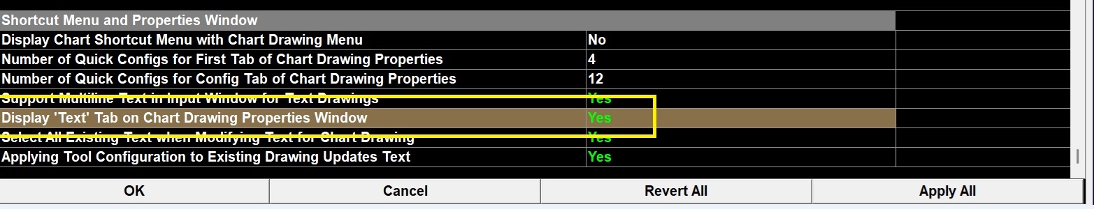 Post From: Display 'text' Tab on chart Draowing Properities Windows.