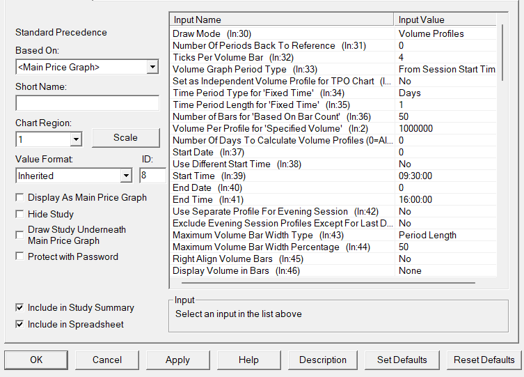 I am trying to have the volume at price study display at the start of the session. For some reason, it only is displaying at from 16:00? Edit* - I believe I found the solution via chatgpt. I selected One Period From Start Time to End Time. This appears to start the profile at 9:30. ----------- How do I make it so if I am viewing it historically that the volume being shown only calculates from the session start time through the bar on the right edge of my screen and not the entire session? Date Time Of Last Edit: 2025-04-30 22:56:00