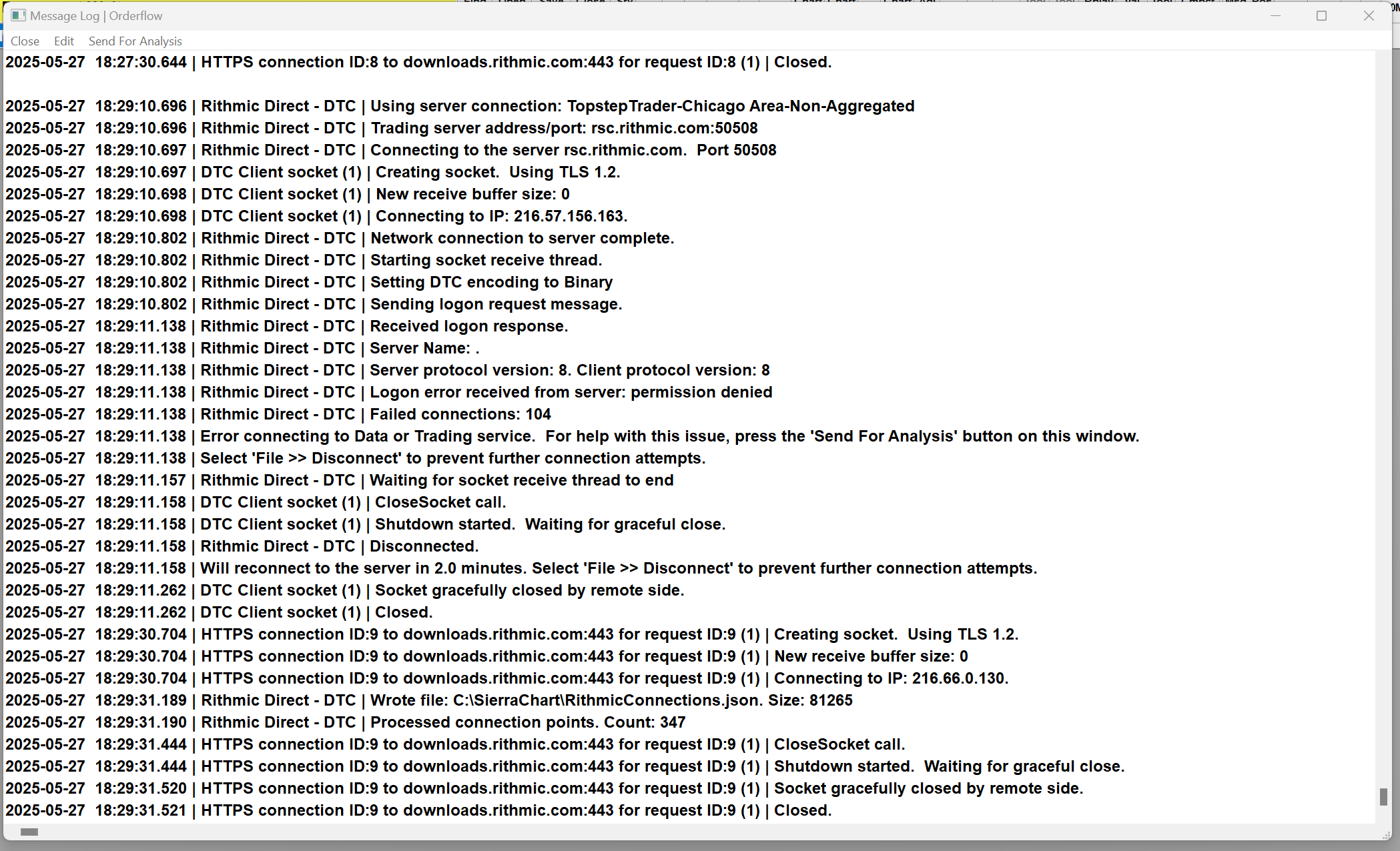 Post From: Apex/rithmic not connecting