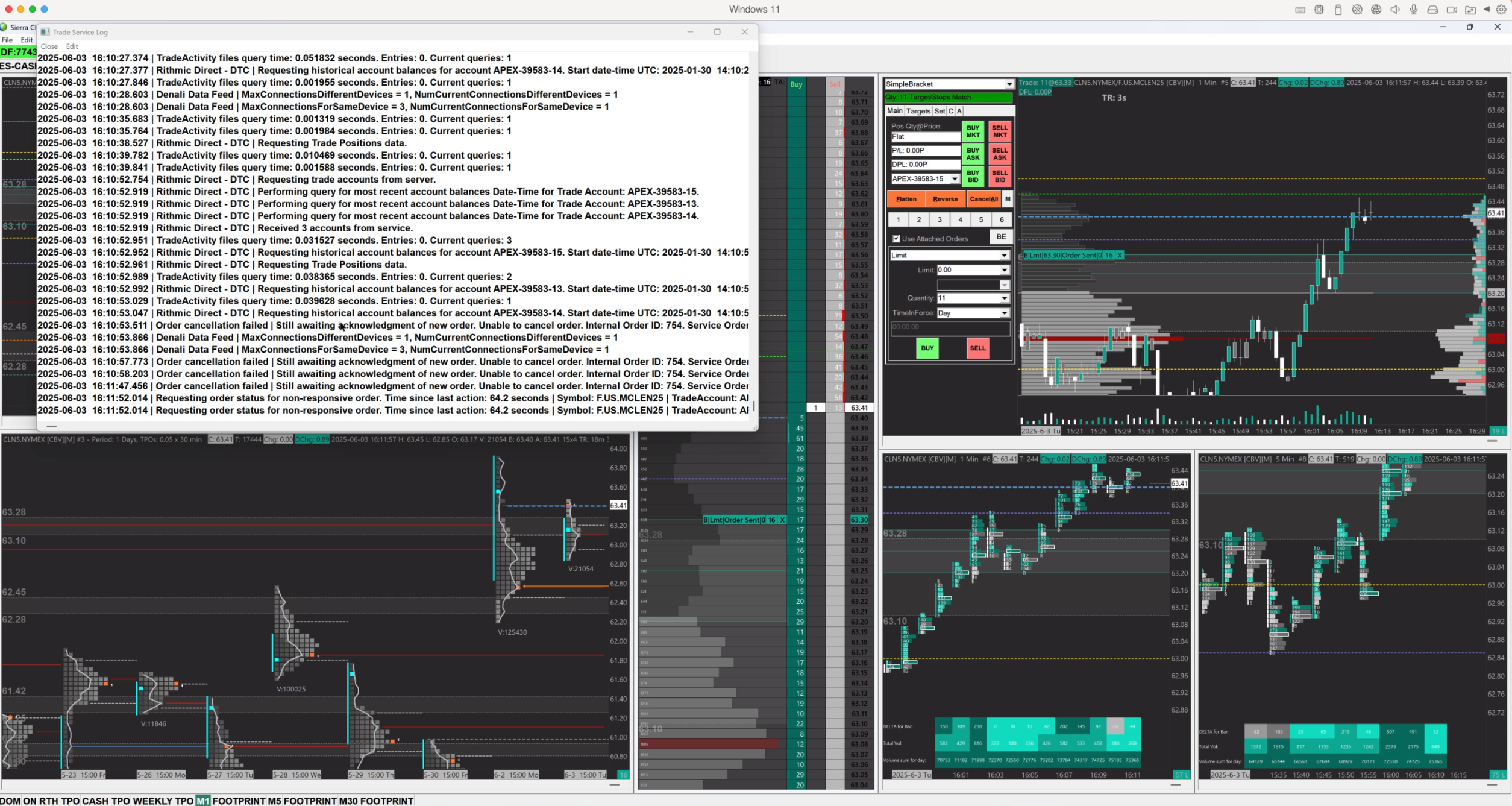 Hello, I’m currently running 3 Apex accounts using the “Order Allocation” feature. Since the beginning of June, I’ve been encountering an issue where every time I place an order, I get disconnected from my data feed. Additionally, when I try to cancel an order, it appears to get stuck — although this seems to be just a visual glitch, as the order disappears after restarting the platform. As shown in the attached screenshot, a specific error message appears when the issue occurs. It seems that placing an order is triggering the data feed disconnection. https://www.sierrachart.com/Download.php?Folder=SupportBoard&download=121662 https://www.sierrachart.com/Download.php?Folder=SupportBoard&download=121663 |
