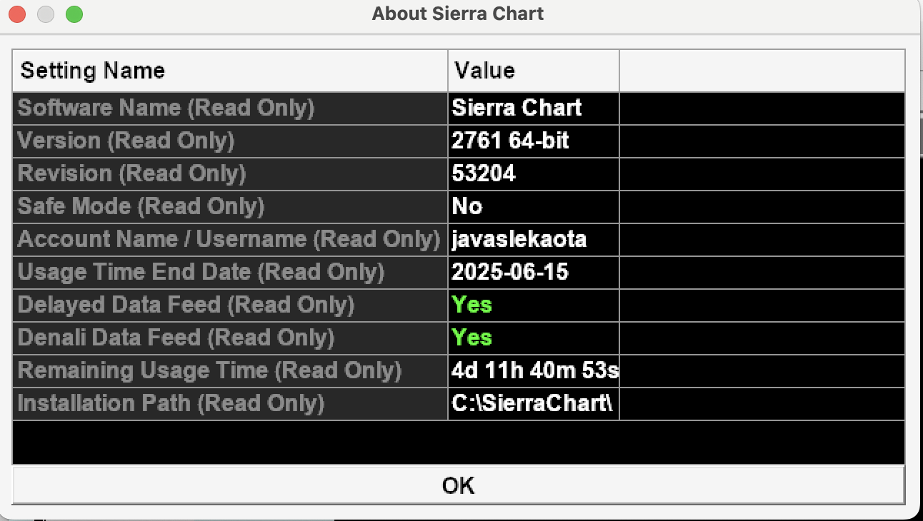 Dear Sierra Chart Support Team, I am encountering a challenge with one of my Chartbooks, which fails to display correctly on the Sierra Chart trading platform. I have attached the Chartbook file for your review. For context, I am running Sierra Chart on an Apple MacBook Pro (M1 chip) using the CrossOver virtual environment for Windows. The specific version of Sierra Chart currently installed is detailed in the attached screenshot. To isolate the issue, I attempted to open the same Chartbook on a separate Windows-based PC, but unfortunately encountered the same problem. I have also attached screenshots of what is displayed on Sierra Chart when attempting to load the Chartbook. I reviewed the system logs for any potential errors that might be related to this issue, but did not identify any relevant entries. [image: image.png] *The below is running on MAC* [image: image.png] *The Chart displays the below screen after uploading:* [image: image.png] I would greatly appreciate your assistance in diagnosing and resolving this issue. |
