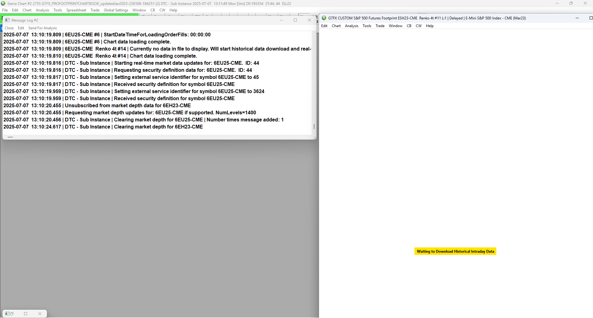 Hi My problem is not loading data for a single chart, but when I open a sub-instance, I don`t get data for the chartbook I want to load in the sub-instance. The system says "Waiting to download historical intraday data" (see screenshot attached), but no data coming in. No problem to load the data for the chartbook in main instance. So I think the problem is in the functioning of the sub- instance. |
