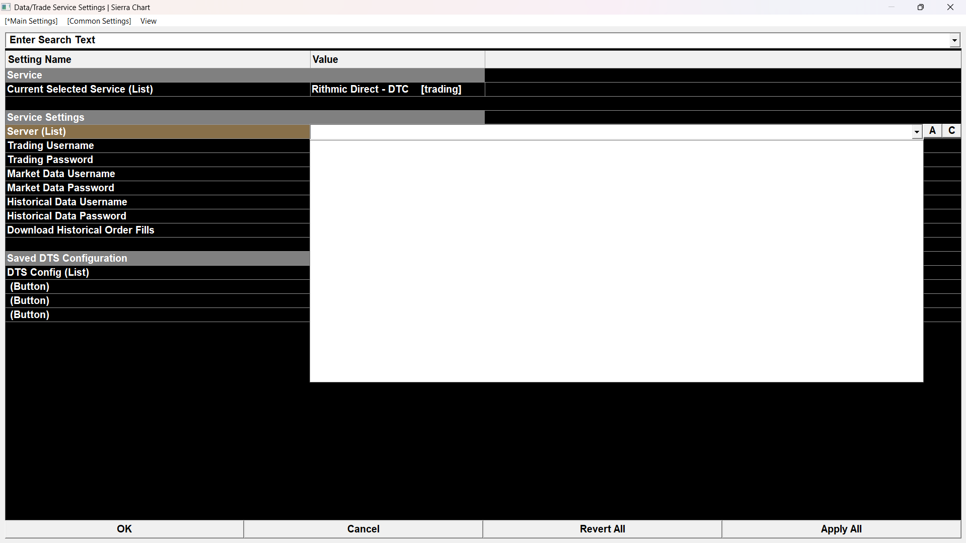Why is the server list in rithmic blank ?