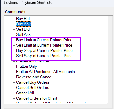 I am checking there is no option for a keyboard shortcut that enters a limit touch chase sell or buy order at the current mouse pointer like the limit or stop orders in the attached screenshot ?? It would be wonderful to have for fast order entry in thin markets |