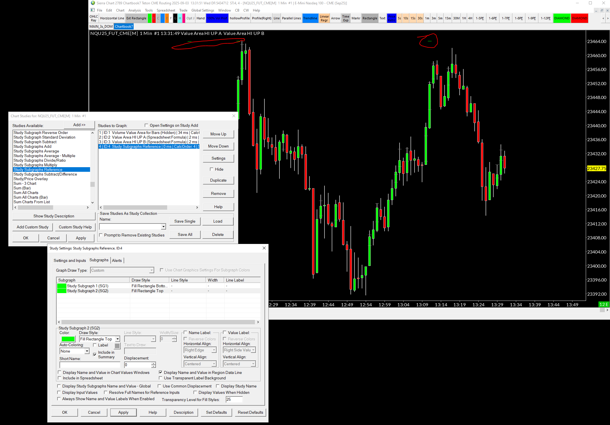 Hi, I was unaware the Spreadsheet formula had conditional capabilities I finally figured that out and it draws the value area high and low only when condition is met gray dashes. When I use Study Subgraphs Reference and fill using method above you gave me it doesn't work. I've attached simple 1 chart chartbook with this setup. This is an amazing advanced functionality I will use in this case and many others so really want to know what I'm doing wrong. Thanks |