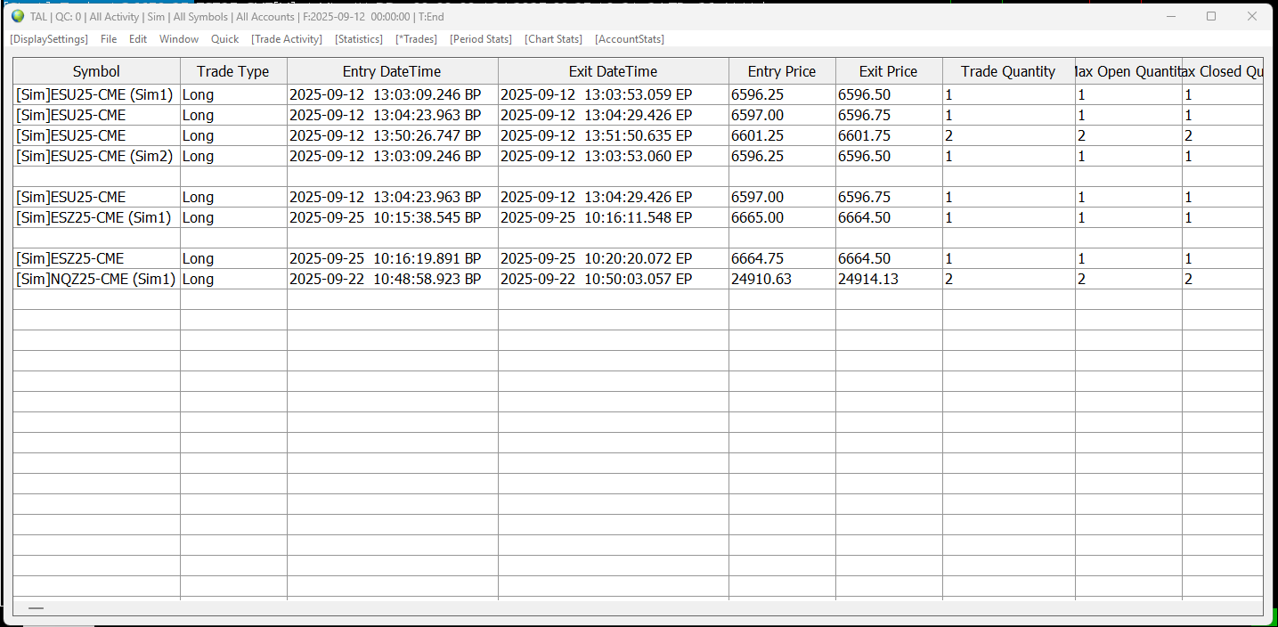Yes. Refer to the following: Trade Activity Log: Trades Fields Descriptions We do not have an image of the "Trades" tab of the Trade Activity Log in our documentation, but here is an image of what it would look like: https://www.sierrachart.com/image.php?Image=1758813685897.png For the most reliable, advanced, and zero cost futures order routing, use the Teton service: Sierra Chart Teton Futures Order Routing |