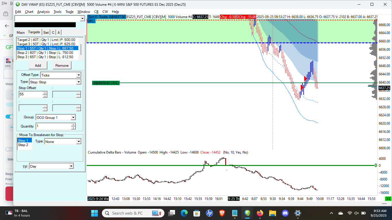 Hi, I think I accidentally pressed a hot-key a few days ago, which added the trade window to the blocks/letters chart in one of my other charts (Market Profile Blocks), in my chartbook. I never execute trades from that chart, but I use it to plan out my trading day. Anyway, after that accidental-hot-key day, my placed orders from my main trading chart no longer adds my stops and losses when placing a market order. (please see the printscreens). From my trade window, I tried deleting what was in the Targets Tab's top window and then re-adding stops and losses as i had them originally, but still it doesn't seem to be working. What am I doing wrong? Thanks in advance. |
