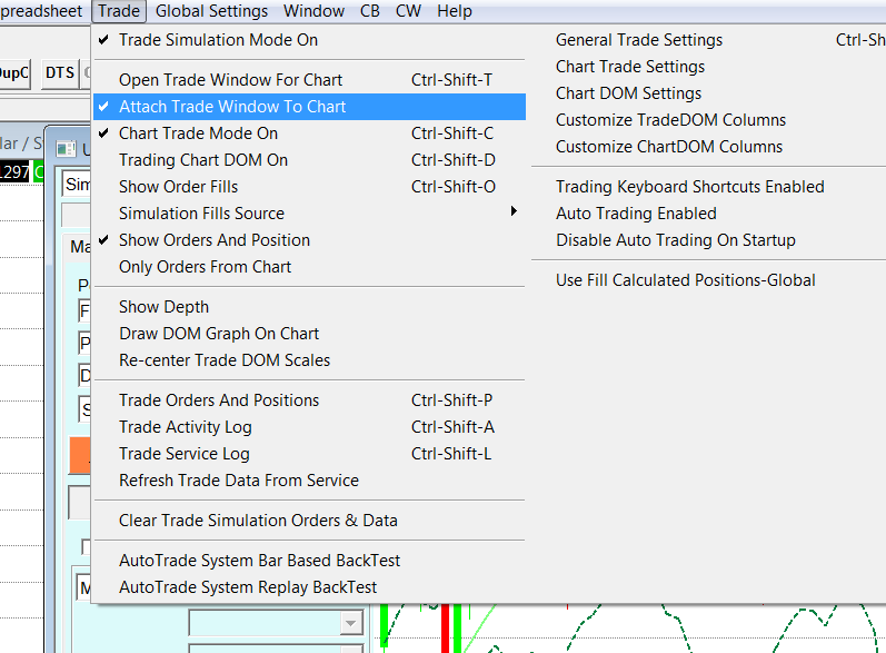 Menu "Trade>Attached Trade Window to Chart" opens TW flush with top of chart. Reopen of menu now shows checkmark. Unchecking item on menu does NOT close TW, but does reopen it with [x] at top right, which permits close. In other words, 3 steps to open & close TW. I don't see option for CTW button to close. That [x] should appear every time. |