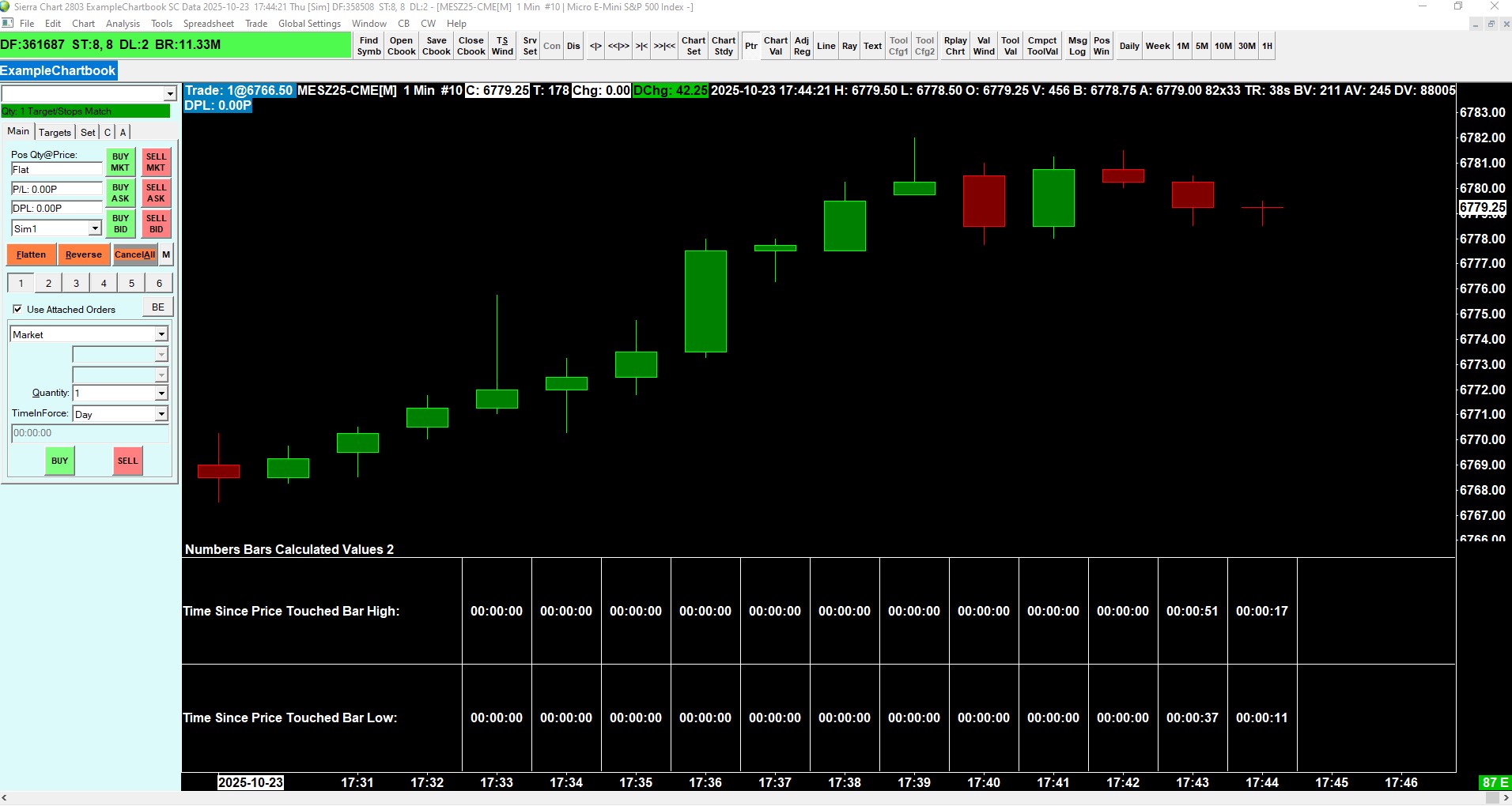John - I am going to install a fresh copy of SC, make no changes at all, hook to Denali, and I'll use the Example Chartbook to test. Works fine. Chart screen capture and data/trade service settings attached. I have multiple installs of SC I use every day. Each one has had the configuration files copied from the original install per the doco on transferring your system if that little tidbit helps. I assume then it has to be in my setup. Date Time Of Last Edit: 2025-10-23 17:48:59