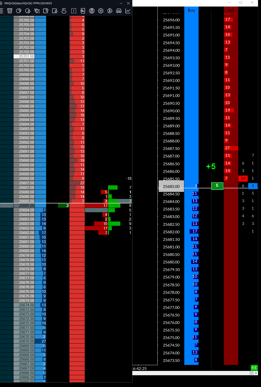 Hi, I prefer in Jigsaw where each level touches the one above/below it NO blank empty spacing is there a way to get the bid/ask histogram FULL height so they touch and zero spaces? I've messed with it for 30+ mins and can't seem to get the same look. |