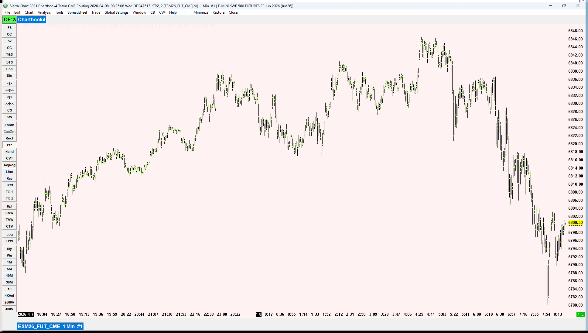 Here is what I am seeing on my side, with references from the current Message Log: The symbol header shows the delayed‑feed mapping: ESM26_FUT_CME[M] The “Data Delay” field does not appear in the chart header The chart updates are delayed compared to real‑time The Message Log does not show any real‑time authorization handshake There is no line indicating a successful real‑time connection to the CME real‑time Denali feed From the log (copied below): Multiple entries show explicit delay measurements, for example: “(8.0 hours. Delay: 2.7 seconds)” and “(4.3 seconds. Delay: 2.4 seconds)” These only appear when the feed is delayed. The symbol is repeatedly mapped with the [M] suffix, for example: “ESM26_FUT_CME[M]/MESM26_FUT_CME[M] 400 Trades #3 | Chart data loading complete.” The real‑time authorization handshake is missing. The line “Real-time Intraday chart data file updates started” appears even when the feed is delayed and does not indicate entitlement. If the DD field is missing and the [M] tag is present, the feed is delayed. Please check the entitlement and session token on your backend. If needed, I can initiate Remote Assistance so you can see the issue directly. Attached is the fresh Message Log and a full‑window screenshot showing the [M] tag and missing DD field. There is no line indicating a successful real‑time connection to the Denali server Here is this morning's message log of a new chart initiated. 2026-04-08 08:18:11.989 | Trade activity files set size: 23 2026-04-08 08:18:12.082 | Created the DTC Protocol server. 2026-04-08 08:18:12.082 | DTC Protocol Server listening on port 11099. Address: 0.0.0.0 2026-04-08 08:18:12.082 | Reading Internal Order ID file. 2026-04-08 08:18:12.096 | Reading Trade Orders file. 2026-04-08 08:18:12.096 | Reading Trade Positions file. 2026-04-08 08:18:12.096 | Reading Trade Account Data files. 2026-04-08 08:18:12.098 | NTP Client | Service successfully started. 2026-04-08 08:18:12.098 | Software version: 2891 64-bit 2026-04-08 08:18:12.098 | OpenGL enabled (NVIDIA Corporation/NVIDIA T400 4GB/PCIe/SSE2) 2026-04-08 08:18:12.098 | Primary Thread ID: 33604 2026-04-08 08:18:12.098 | Usage end date: 2026-04-25 2026-04-08 08:18:12.098 | Enabled for: Advanced Features 2. 2026-04-08 08:18:12.098 | Enabled for: Sierra Chart Historical Data Service. 2026-04-08 08:18:12.098 | Enabled for: Denali Real-Time Exchange Data Feed. 2026-04-08 08:18:12.098 | Enabled for: Delayed Denali Exchange Data Feed. 2026-04-08 08:18:12.098 | Enabled for exchange2: CME 2026-04-08 08:18:12.098 | Allow Support for Sierra Chart Data Feeds is enabled. 2026-04-08 08:18:12.098 | Current selected Data/Trading service: Teton CME Routing 2026-04-08 08:18:12.098 | Custom symbol settings values: disabled 2026-04-08 08:18:12.098 | Chart Update Interval: 50 2026-04-08 08:18:12.098 | Intraday Data Storage Time Unit: 0 2026-04-08 08:18:12.098 | Time Zone: -07:00:00 (PST-08PDT+01,M3.2.0/02:00,M11.1.0/02:00) 2026-04-08 08:18:12.098 | 2026-04-08 15:18:12 Local computer time in UTC 2026-04-08 08:18:12.098 | 2026-04-08 08:18:12 Local computer time in SC Time Zone 2026-04-08 08:18:12.098 | 2026-04-08 15:18:09 Server time in UTC 2026-04-08 08:18:12.098 | Local computer UTC time and Server UTC time difference: 2 seconds. 2026-04-08 08:18:12.098 | Program path: C:\SierraChart\ 2026-04-08 08:18:12.098 | Data Files path: C:\SierraChart\Data\ 2026-04-08 08:18:12.098 | OS Version Number: 10.0 2026-04-08 08:18:12.098 | Locale Setting: C 2026-04-08 08:18:12.098 | Crash reporter started: true 2026-04-08 08:18:12.098 | 2026-04-08 08:18:12.106 | Created the DTC Protocol historical data server. 2026-04-08 08:18:12.107 | HD Server Manager | Listening on port 11098. 2026-04-08 08:18:12.107 | Checking for new symbol settings. Requested symbol settings MD5 for service code sc_futures_direct.dtc.trading. Request ID: 1. 2026-04-08 08:18:12.156 | HTTPS connection ID:1 to login.sierrachart.com:443 for request ID:1 (1) | Shutdown started. Waiting for graceful close. 2026-04-08 08:18:12.238 | HTTPS connection ID:1 to login.sierrachart.com:443 for request ID:1 (1) | Socket gracefully closed by remote side. 2026-04-08 08:18:12.238 | HTTPS connection ID:1 to login.sierrachart.com:443 for request ID:1 (1) | Closed. 2026-04-08 08:18:12.358 | Received 5 login tokens. 2026-04-08 08:18:12.498 | Symbol settings MD5 received. Request ID: 1. 2026-04-08 08:18:12.498 | Symbol settings are up-to-date for sc_futures_direct.dtc.trading. 2026-04-08 08:18:14.612 | Requested user files to download. 2026-04-08 08:18:19.839 | Files to Open on Startup | Opening file: ES.Cht 2026-04-08 08:18:19.864 | ESM26_FUT_CME/MESM26_FUT_CME 2500 Trades #1 | Reloading chart. 2026-04-08 08:18:20.096 | ESM26_FUT_CME/MESM26_FUT_CME 400 Trades #3 | Reloading chart. 2026-04-08 08:18:20.133 | ESM26_FUT_CME/MESM26_FUT_CME [CBV] 1 Day #2 | Reloading chart. 2026-04-08 08:18:20.157 | 2026-04-08 08:18:20.157 | Teton CME Routing | Firm: IronBeam 2026-04-08 08:18:20.157 | Teton CME Routing | Connecting to the server futurestrading10.sierracharts.com. Port 11085 2026-04-08 08:18:20.157 | Starting DelayedDownloadMonitoringTimer 2026-04-08 08:18:20.157 | Starting HDTimeoutTimer 2026-04-08 08:18:20.158 | Added historical Intraday data request for ESM26_FUT_CME to the queue. 2026-04-08 08:18:20.158 | Triggering next historical data download in queue. 2026-04-08 08:18:20.159 | ESM26_FUT_CME/MESM26_FUT_CME [CBV] 1 Day #2 | Performing continuous chart historical Daily data download for symbol ESM26_FUT_CME starting at last date in file. 2026-04-08 08:18:20.159 | Starting DelayedDownloadMonitoringTimer 2026-04-08 08:18:20.159 | Starting HDTimeoutTimer 2026-04-08 08:18:20.159 | Added historical Daily data request for ESM26_FUT_CME to the queue. 2026-04-08 08:18:20.159 | Triggering next historical data download in queue. 2026-04-08 08:18:20.181 | ESM26_FUT_CME/MESM26_FUT_CME [CBV] 1 Day #2 | Waiting for historical downloads to complete with 