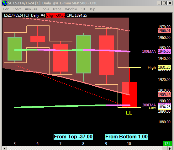 I am trying to display the price differential from both the HOD and LOD using the "Text Display for Study" The methods below work correctly on a Daily Chart (ES). But, the do not work on and intraday chart either minutes or Renko. I am using the HOD and LOD from the study "High/Low for Time Period extended. I am then subtracting the LAST price for the High or Low using the Subtract Difference Study. I then am displaying the result. In the Daily chart the price differences From Top and From Bottom diplay correctly. In the Renko chart the From Top and From Bottom vales are both 37 and are incorrect. The methods are identical in both charts. I have enclosed a screen shot of both charts. Help please. Thanks |