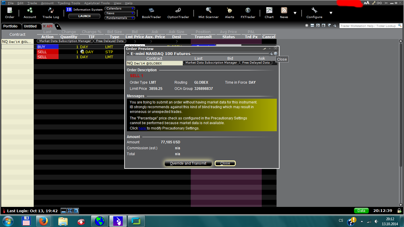 When I try to send trade order to Interactive Brokers, I am not filled and I received this warning messages (see. screenshots). Thank you for your help. log file: (Message Log removed) Date Time Of Last Edit: 2014-10-13 19:36:08